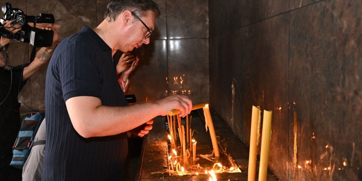 Tokom obilaska manastira Tumane, predsednik je zapalio sveću za žive i mrtve.