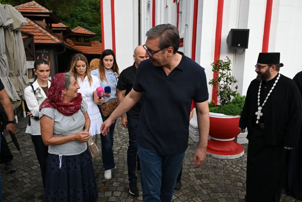 Iguman je upoznao predsednika sa aktuelniom projektima u manastiru, a Vučić je primetio da mu se čini da je manastir svaki put kada dođe sve lepši.