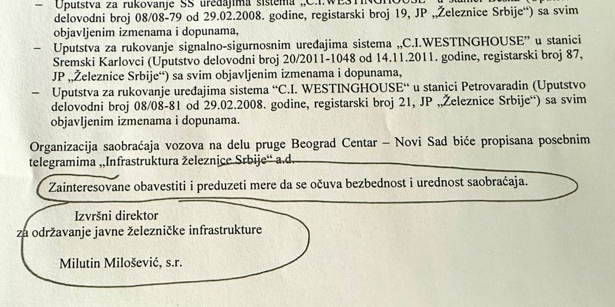 Šta se sve nalazi u telegramu koji je potpisan dve i po godine pre pada nadstrećnice pročitajte OVDE, a u nastavku pročitajte i deo podneska advokata Aleksića.