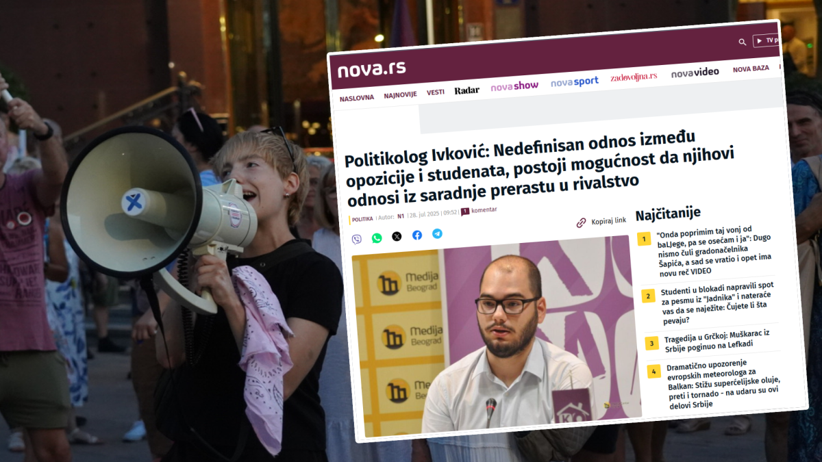 - Od strane studenata bi bio pametan politički potez da se nađe stav koji će učiniti da se parlamentarna opozicija oseća manje ugroženo - kaže Ivković što je samo eufemizam za precizniju tvrdnju da su blokaderi i opozicija kao rogovi u vreći.