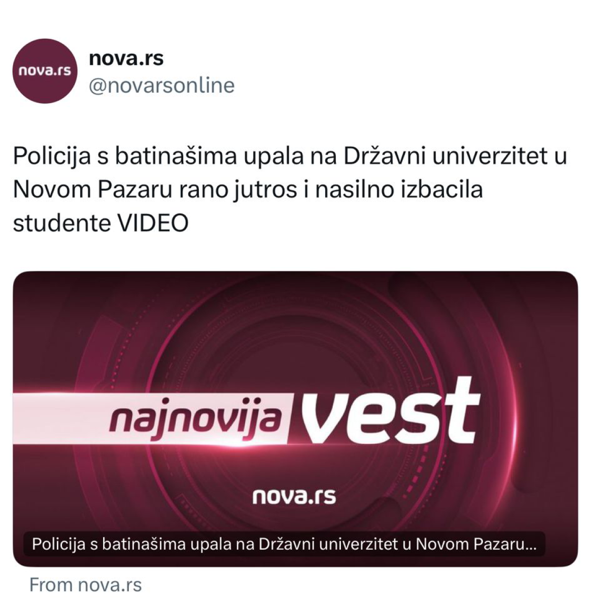 Na ovom portalu, naime, objavljen je članak u kome se tvrdi da je policija upala na državni univerzitet u Novom Pazaru "zajedno sa batinašima" i izbacila studente napolje.