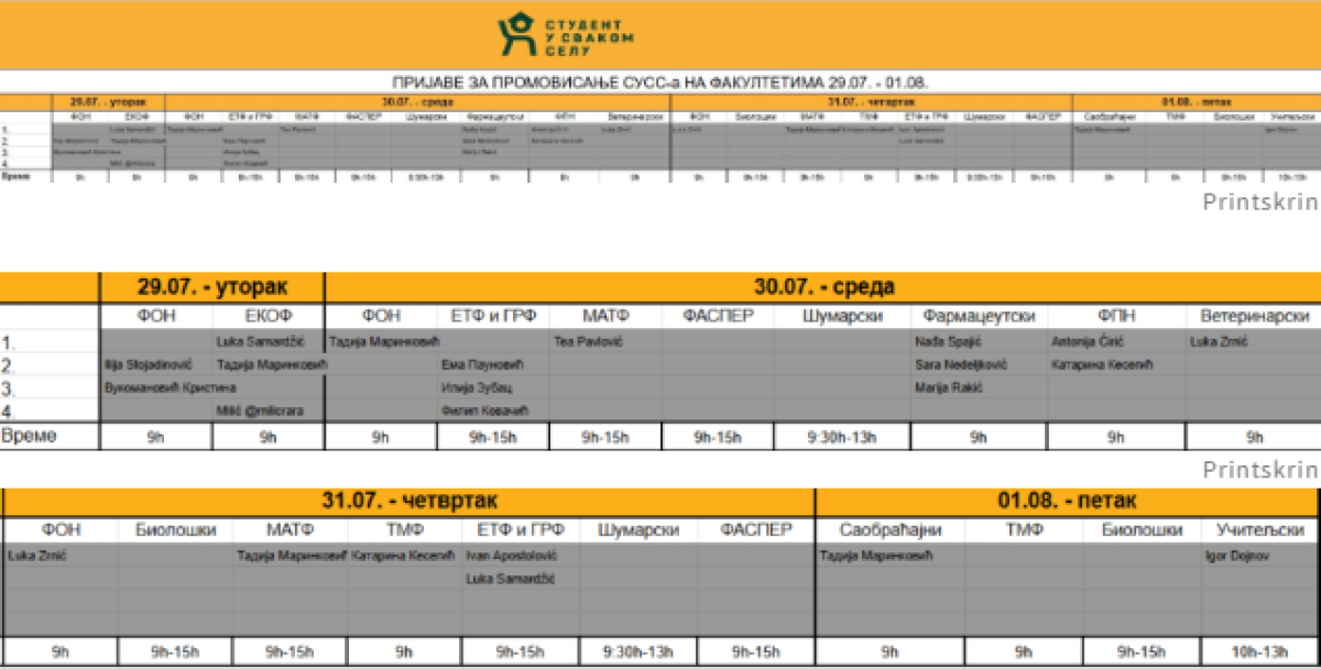 Njihov pakleni plan svodi se na vrbovanje onih koji su tek upisali prvu godinu studija i to neposredno nakon prijemnih ispita?! A kako bi sve trebalo da izgleda vidi se iz spiskova sa tebelama na kojima su imena i prezimena zgubidana koji će narednih dana u određeno vreme dežurati na fakultetima i pokušavati da mlađe kolege privole da se pridruže njihovim huliganskim redovima.