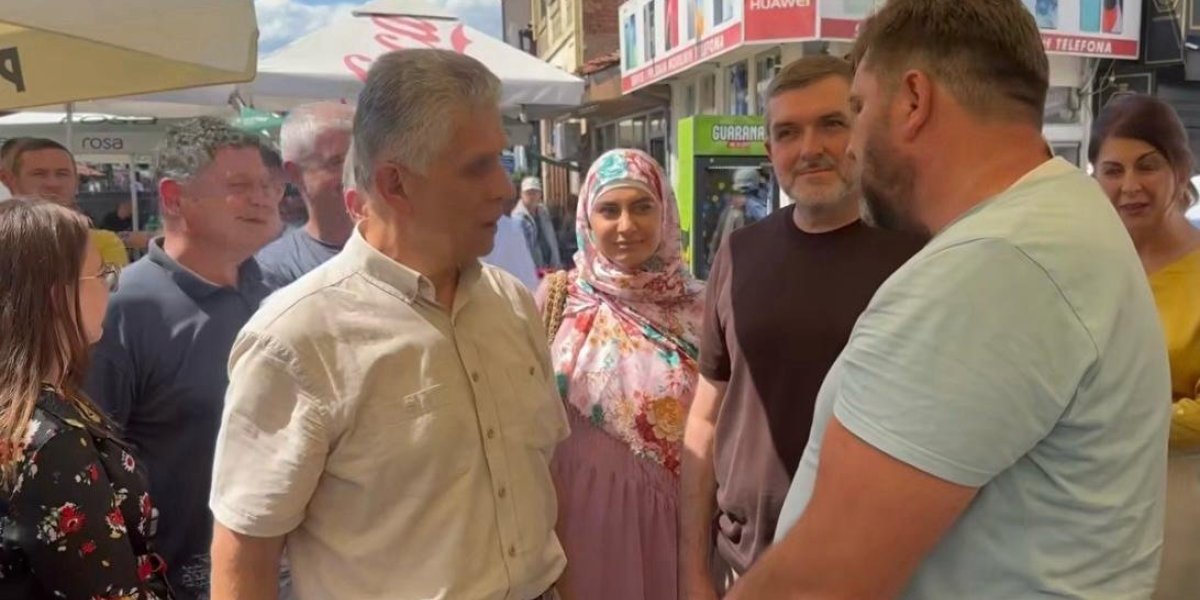 Ugljanina su na kružnom toku kod Gradske uprave dočekali odbornici SDAS u SO Novi Pazar, kao i organizator blokade kod GU i otac studenta blokadera Ahmeda Koničanina, Senad Koničanin.