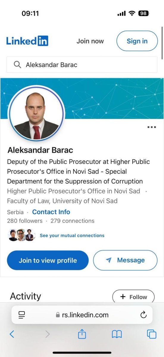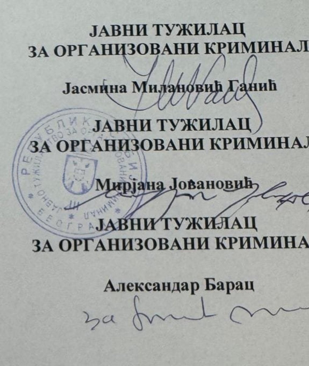 Dodatno zabrinjava i činjenica da je naredbu umesto tužioca Aleksandra Barca potpisalo drugo lice „za njega“. Iako takva zamena formalno nije nezakonita, ona ukazuje na neozbiljnost u postupanju Javnog tužilaštva za organizovani kriminal, koje u predmetu protiv visokih javnih funkcionera nije obezbedilo puno prisustvo nadležnog javnog tužioca.