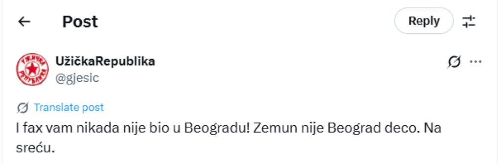 - I faks vam nikada nije bio u Beogradu. Zemun nije Beograd, deco. Na sreću - napisao je Ješić na Iksu.