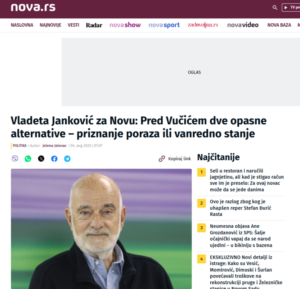 Predsednik Srbije odgovorio je Vladeti Jankoviću koji je poručio da Vučić mora ili da prizna poraz ili će uvesti vanredno stanje.