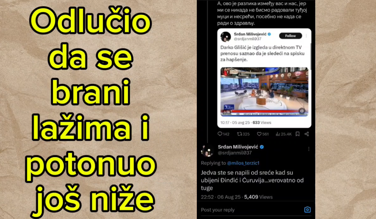 Naime, zgubidan Srđan Milivojević je odlučio je da se brani lažima i potonuo još niže.