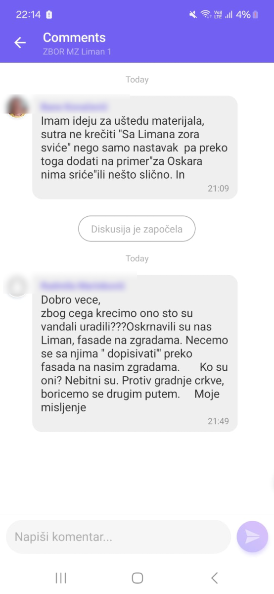 - Nećemo se sa njima dopisivati preko fasada na našim zgradama. Ko su oni? Nebitni su. Protiv gradnje crkve borićemo se drugim putem - doslovce stoji u odgovoru.