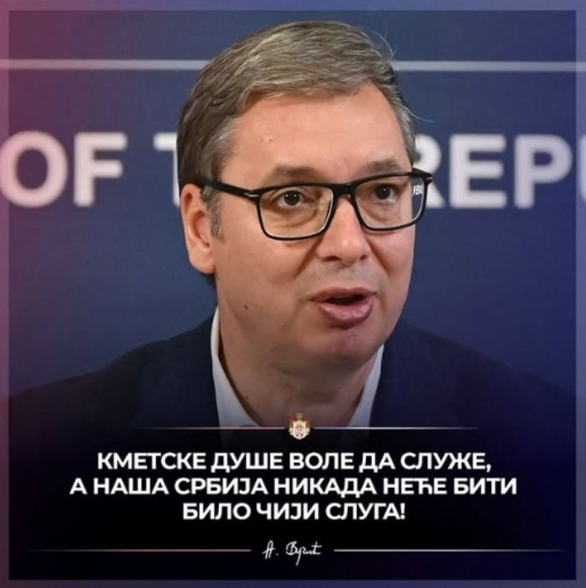 - Žele da imamo predsednika koji nije nadležan, koji bi klečao pred svima koji Srbiji ne žele dobro, koji bi se hvalio time da sluša Severinu i da nije ponosan što je predsednik Srbije - rekao je Vučić u Palati Srbija.