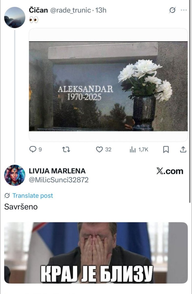 Povodom objave na društvenoj mreži Iks, kojom se insinuira smrt predsednika Republike Aleksandra Vučića, Više javno tužilaštvo u Beogradu je, kako saznajemo, naložilo policiji da utvrdi identitet lica koje je objavilo sporni sadržaj.