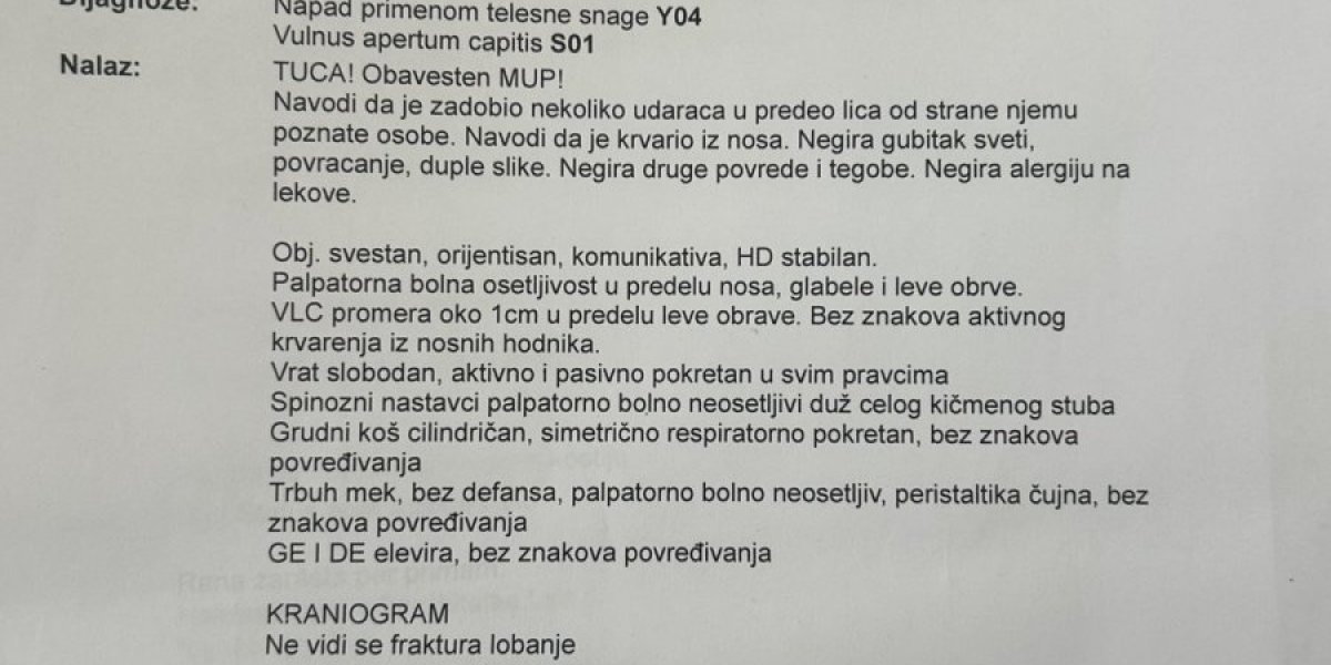 On je nakon nemilog napada bio u bolnici jer je zadobio višestruke povrede, ali srećom nije zadobio prelom kostiju.