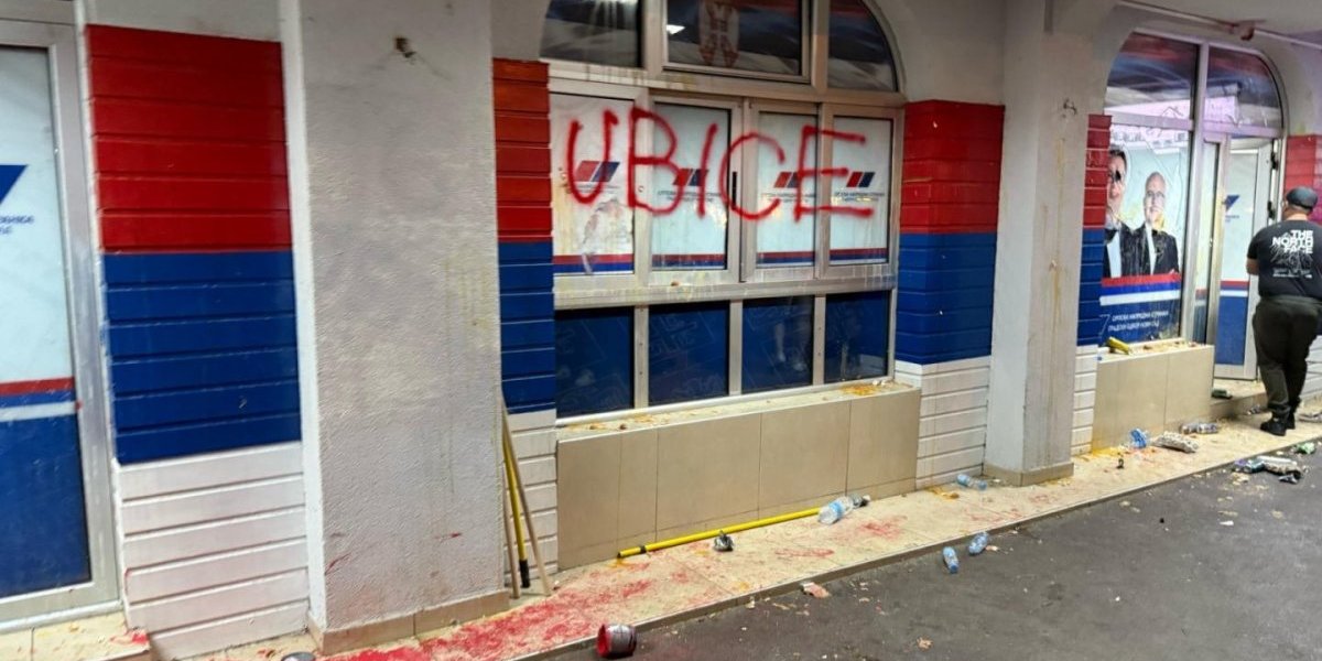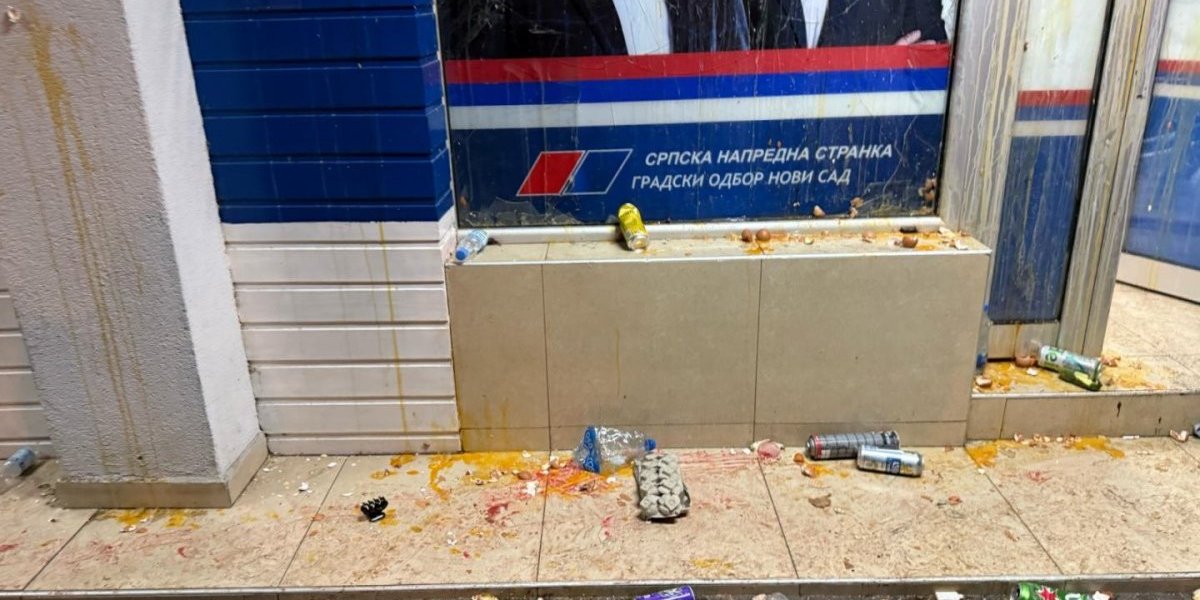 Naime, nekoliko desetina nasilnih zgubidana napala je prostorije Srpske napredne stranke (SNS) u tom gradu, potpuno uništivši stakla i plato ispred, budući da su deo objekta zasuli kamenicama, jajima, ali i nečim što najviše liči na smeće.
