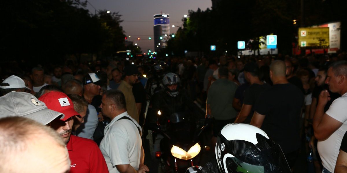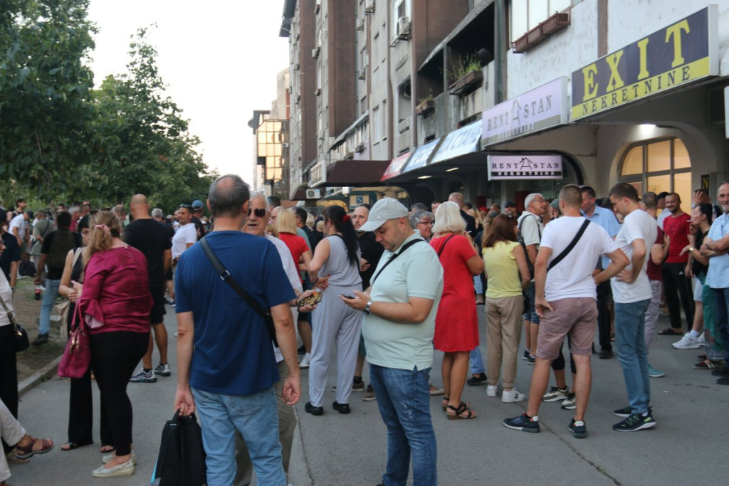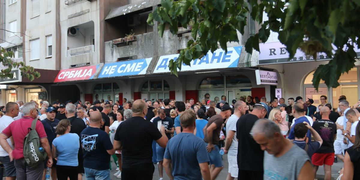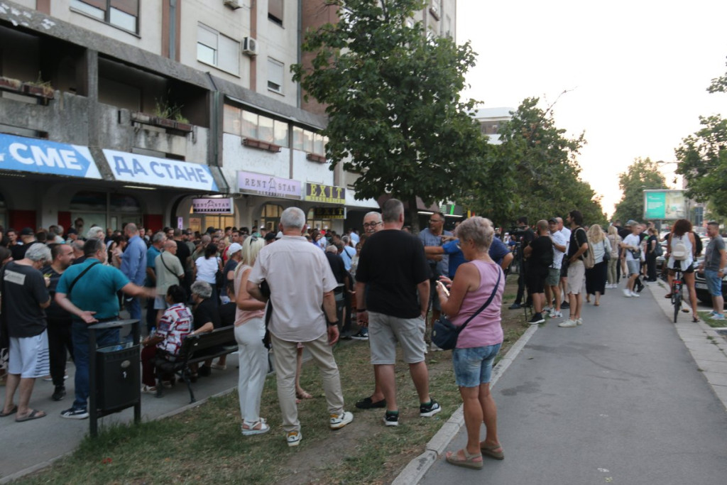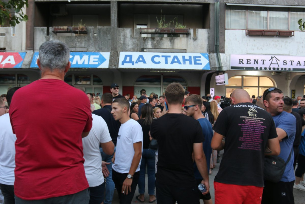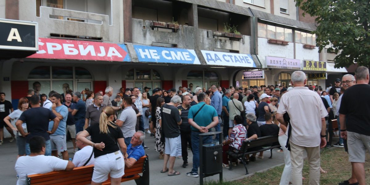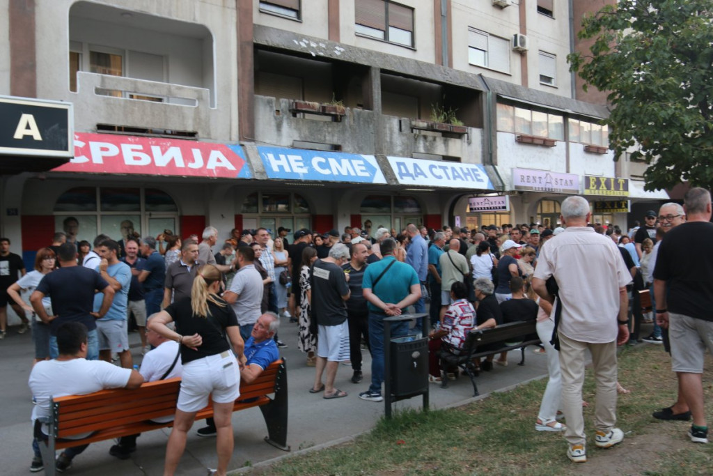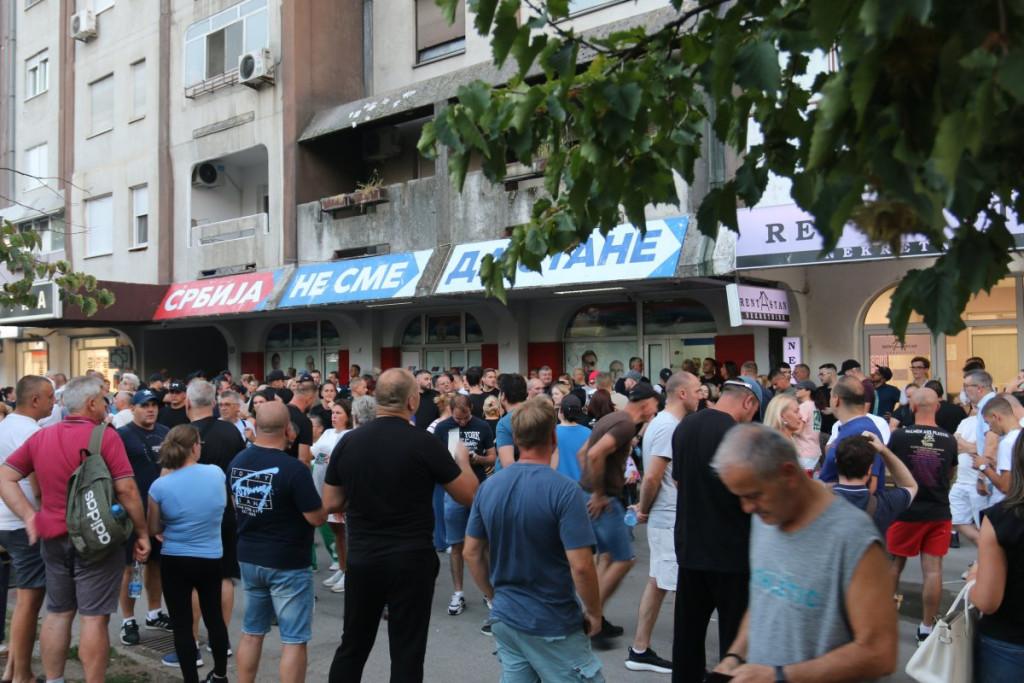 Prema trenutnim procenama, okupilo se oko stotinu pristalica ove grupe, dok se neposredno ispred samih prostorija nalaze članovi i simpatizeri SNS-a, koji mirno stoje u odbrani svojih prostorija i simbola stranke.