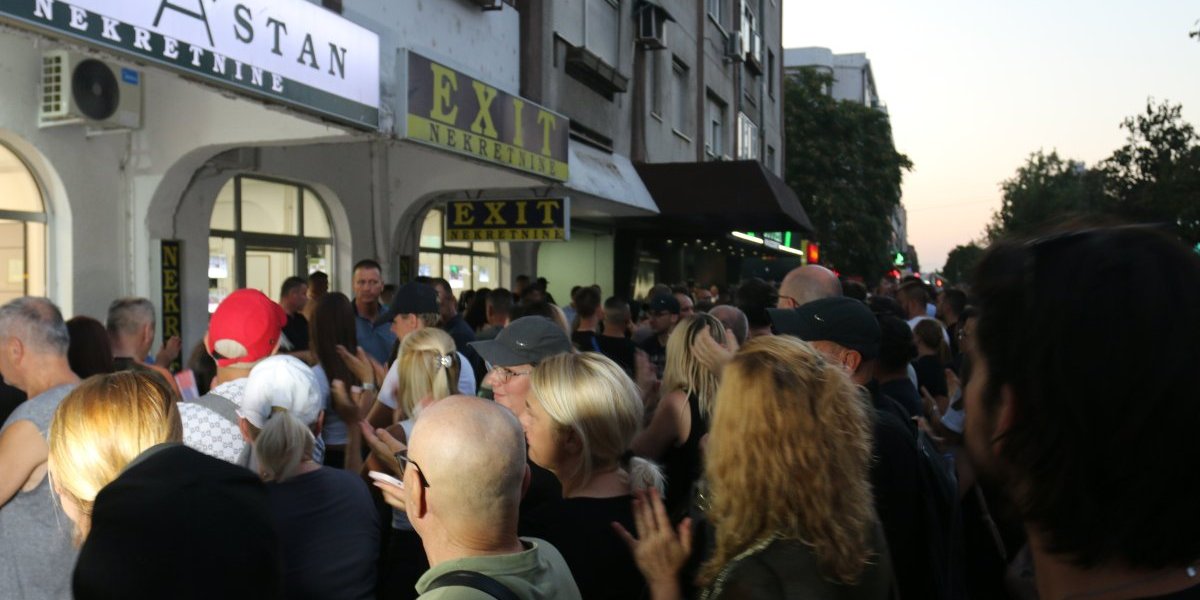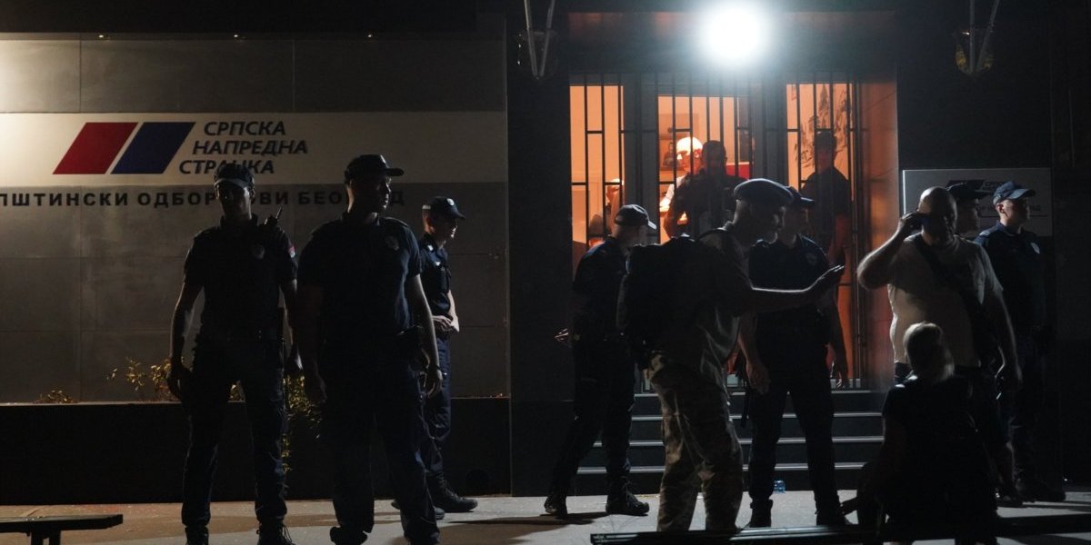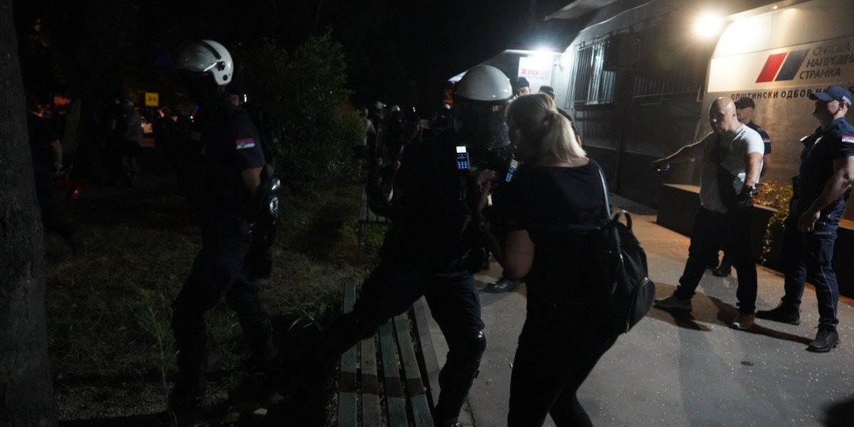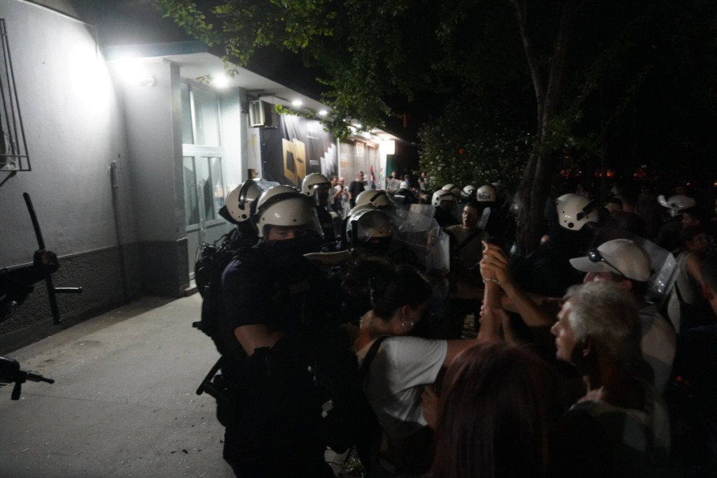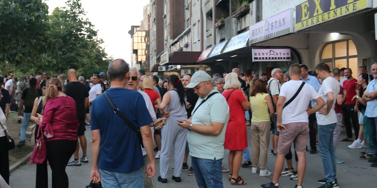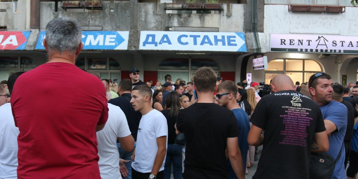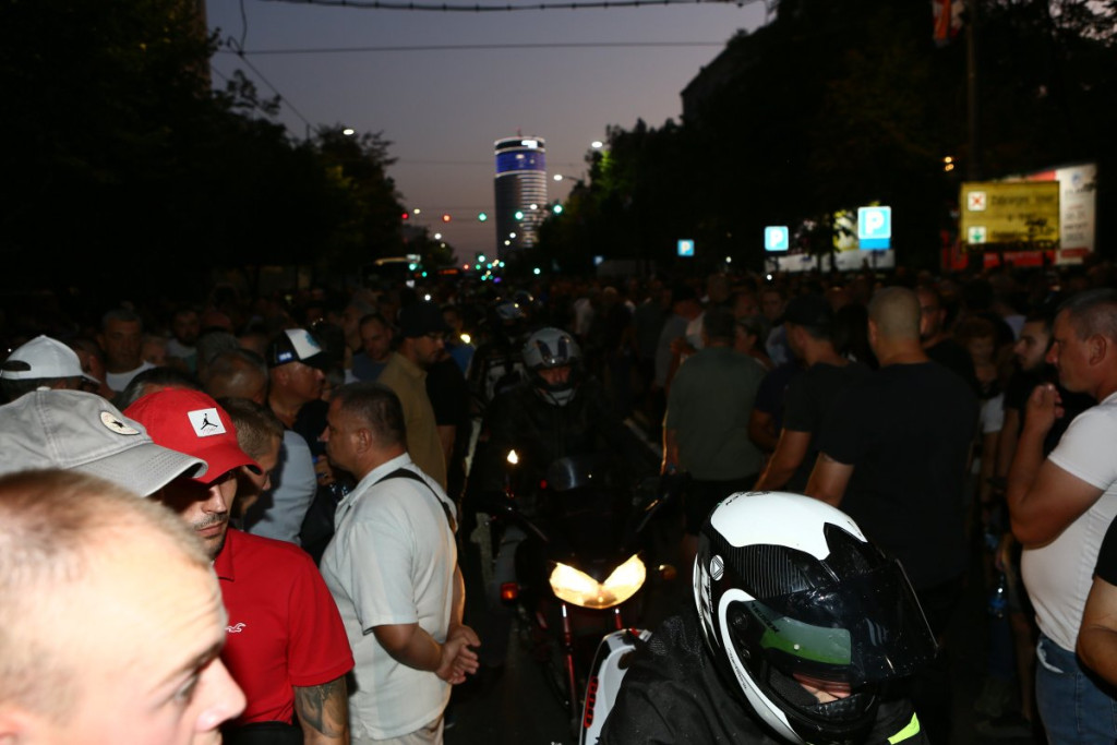 Prema trenutnim procenama, okupilo se oko stotinu pristalica ove grupe, dok se neposredno ispred samih prostorija nalaze članovi i simpatizeri SNS-a, koji mirno stoje u odbrani svojih prostorija i simbola stranke.