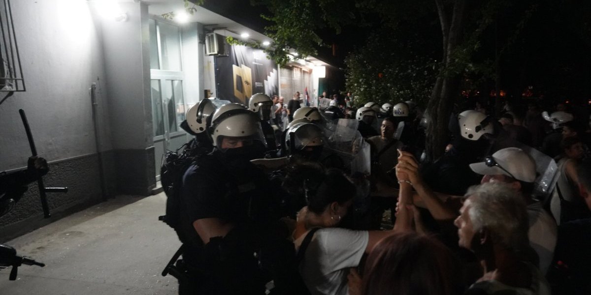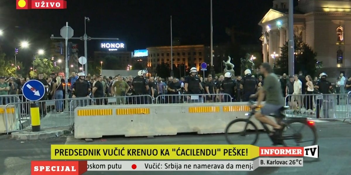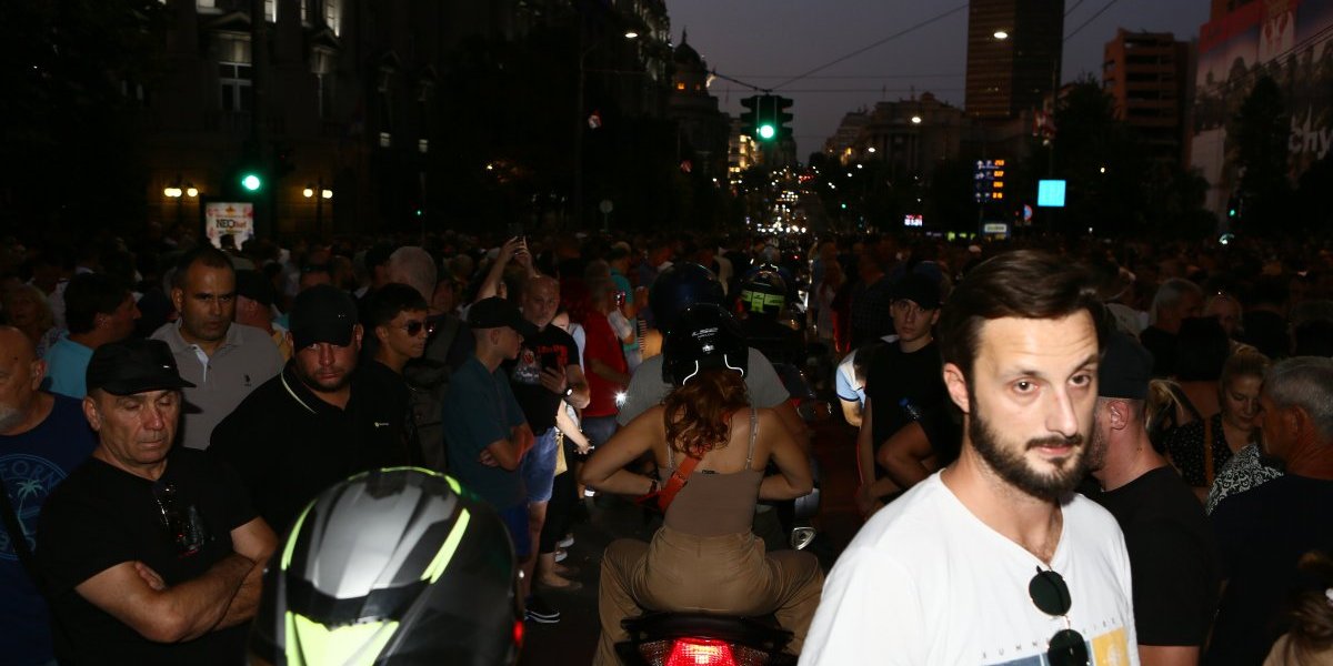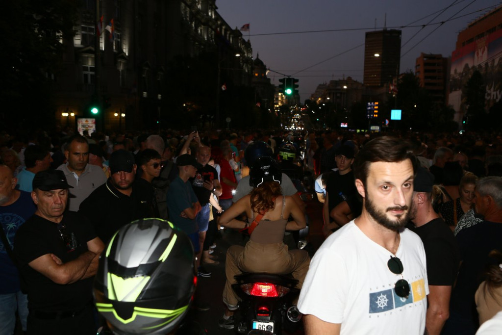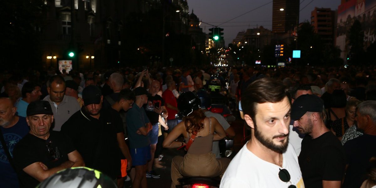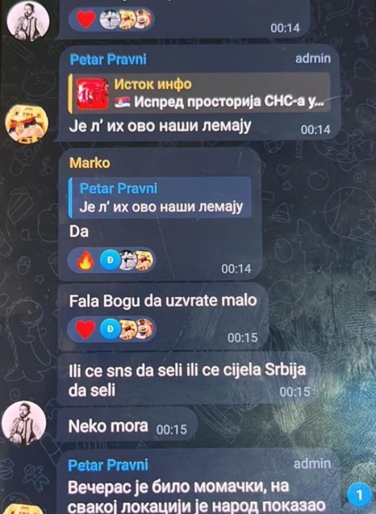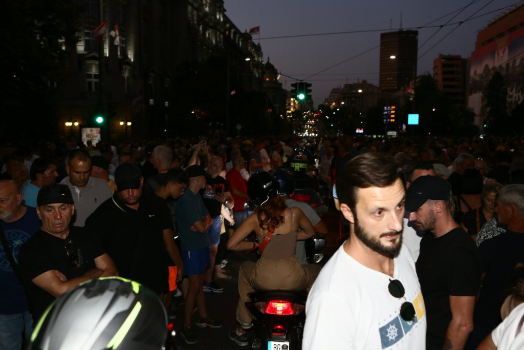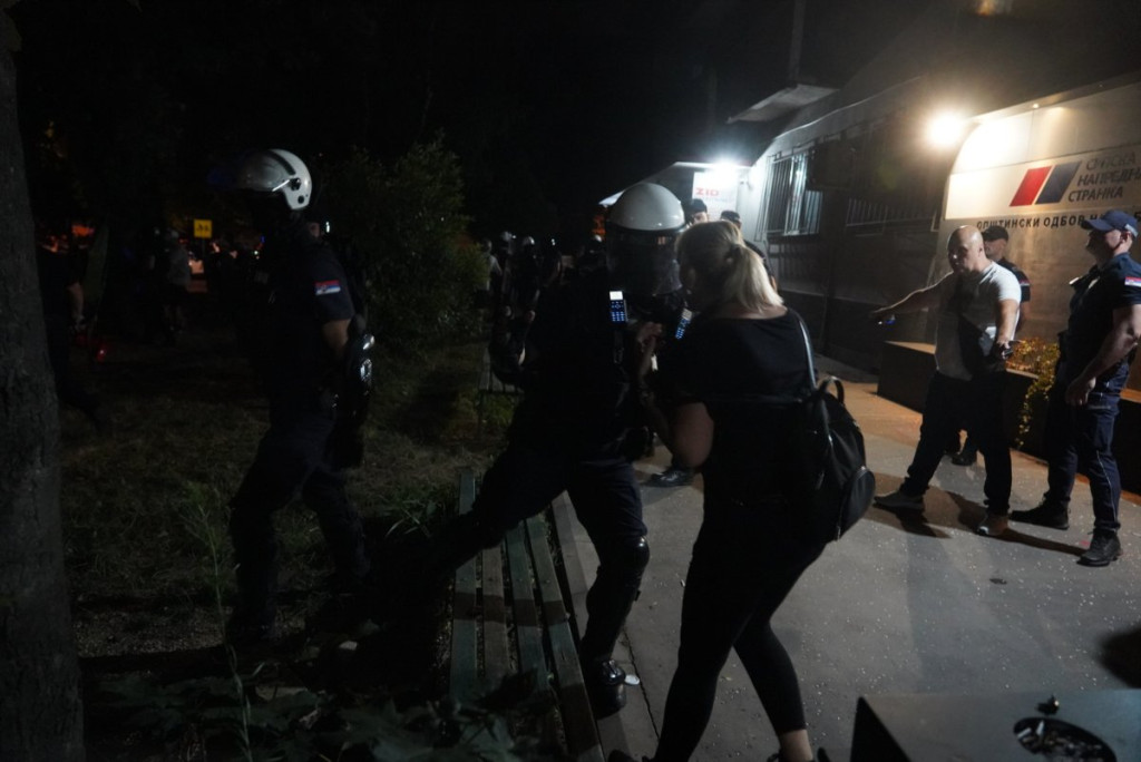 Prema trenutnim procenama, okupilo se oko stotinu pristalica ove grupe, dok se neposredno ispred samih prostorija nalaze članovi i simpatizeri SNS-a, koji mirno stoje u odbrani svojih prostorija i simbola stranke.