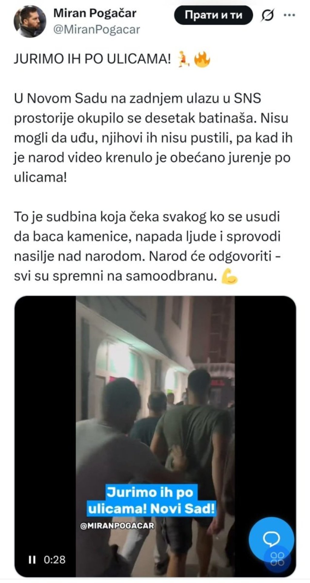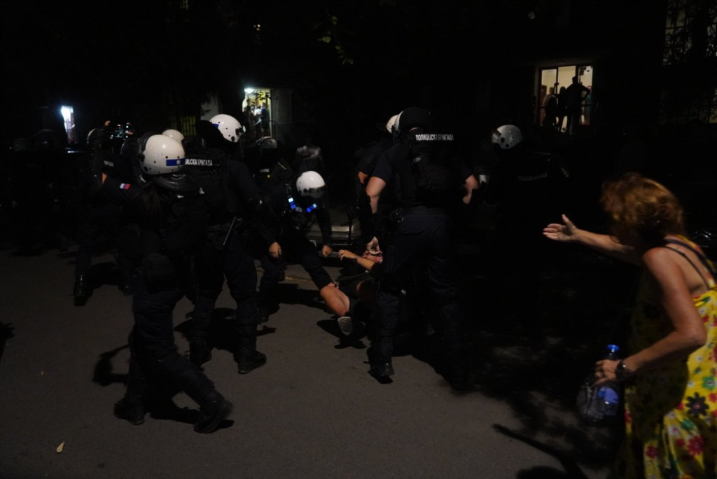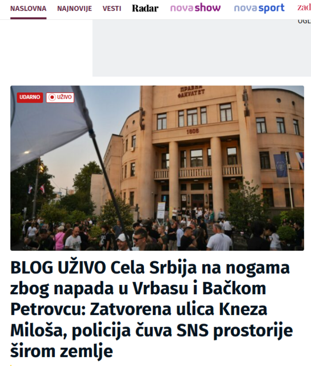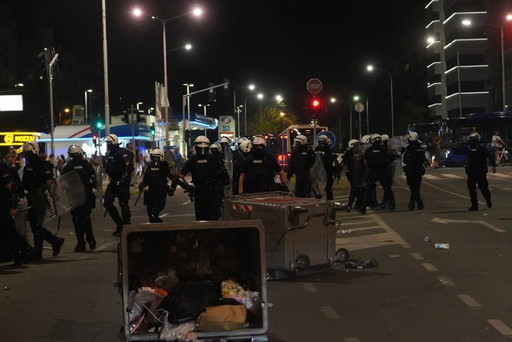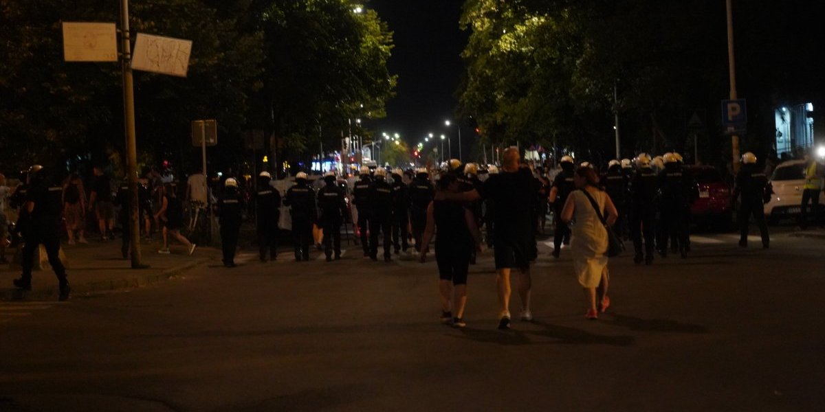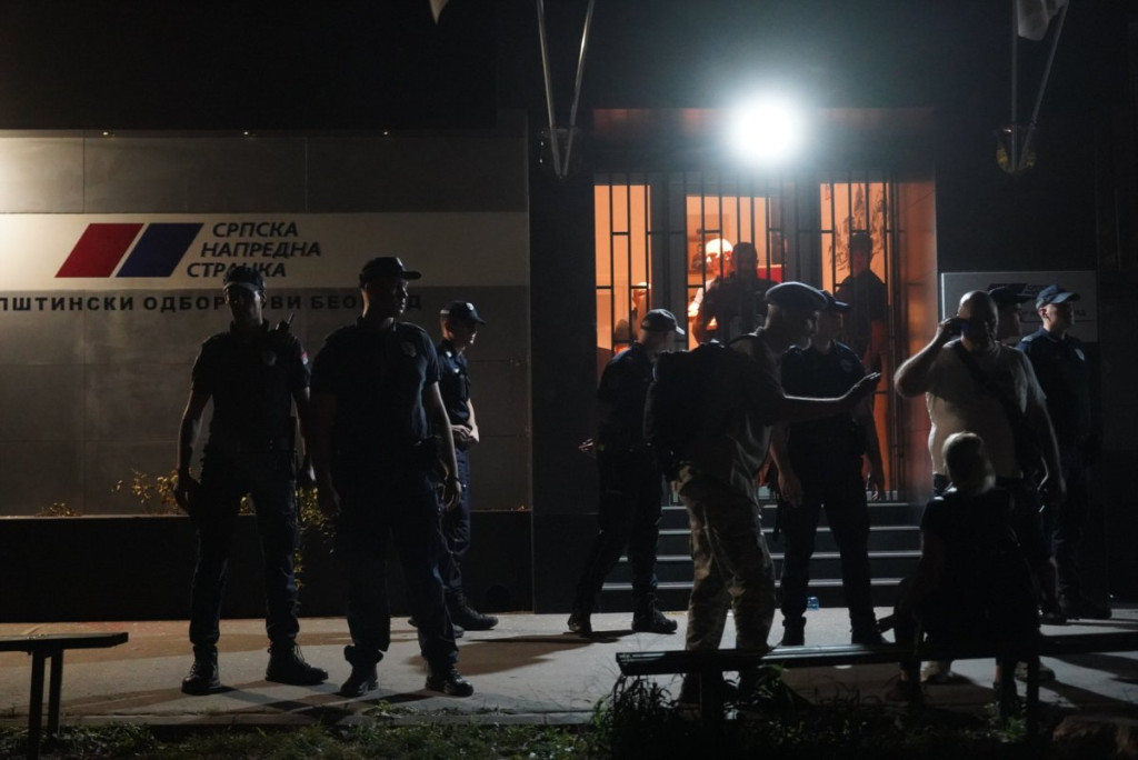 Prema trenutnim procenama, okupilo se oko stotinu pristalica ove grupe, dok se neposredno ispred samih prostorija nalaze članovi i simpatizeri SNS-a, koji mirno stoje u odbrani svojih prostorija i simbola stranke.