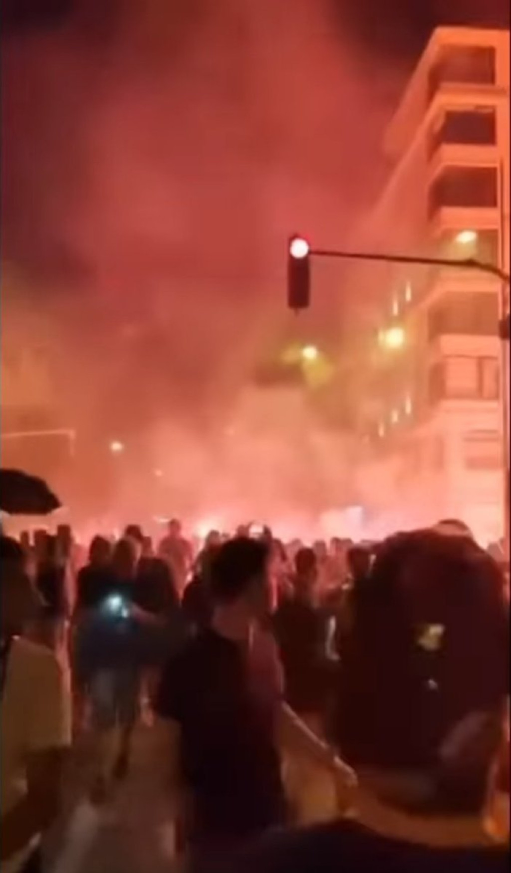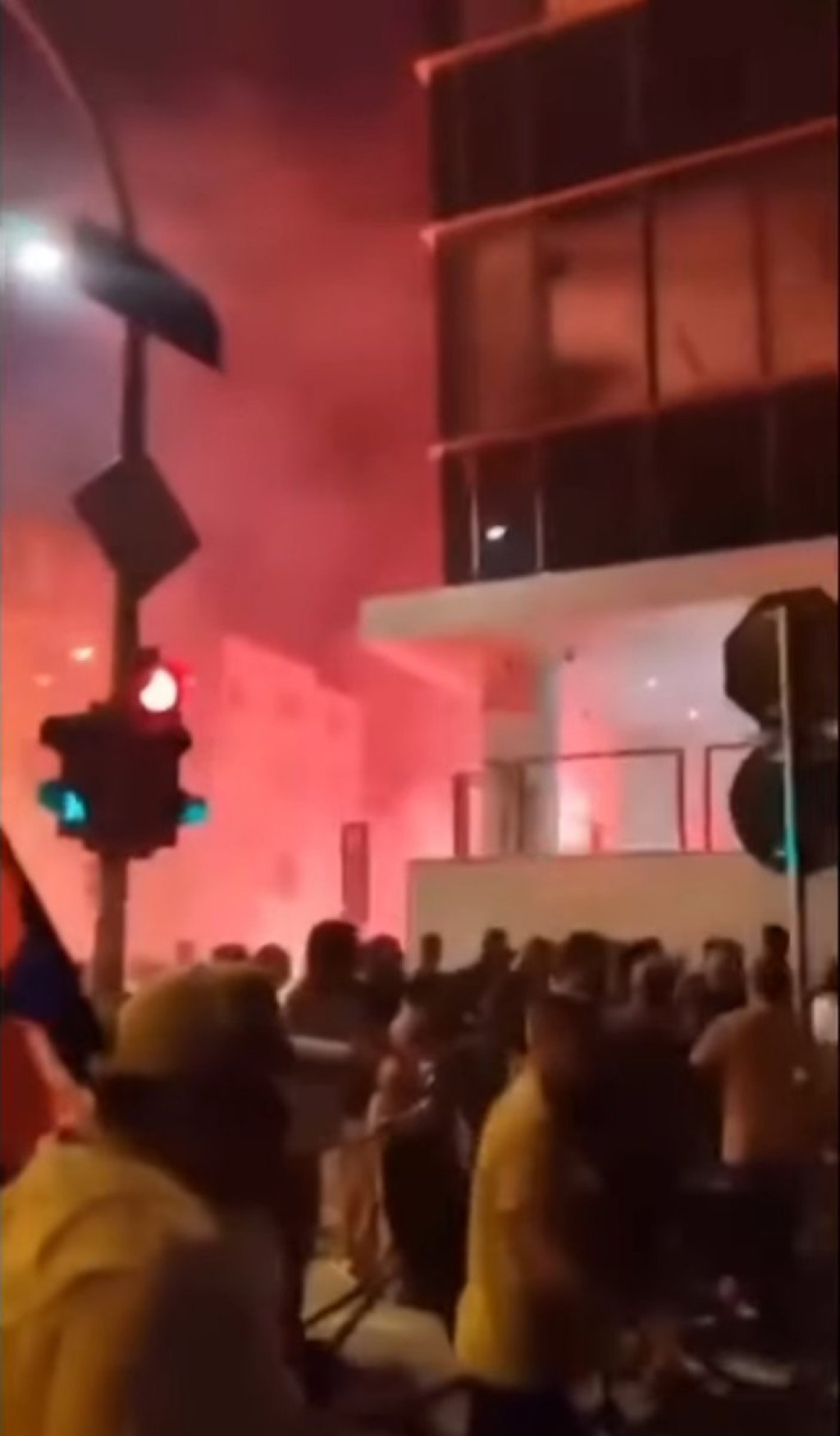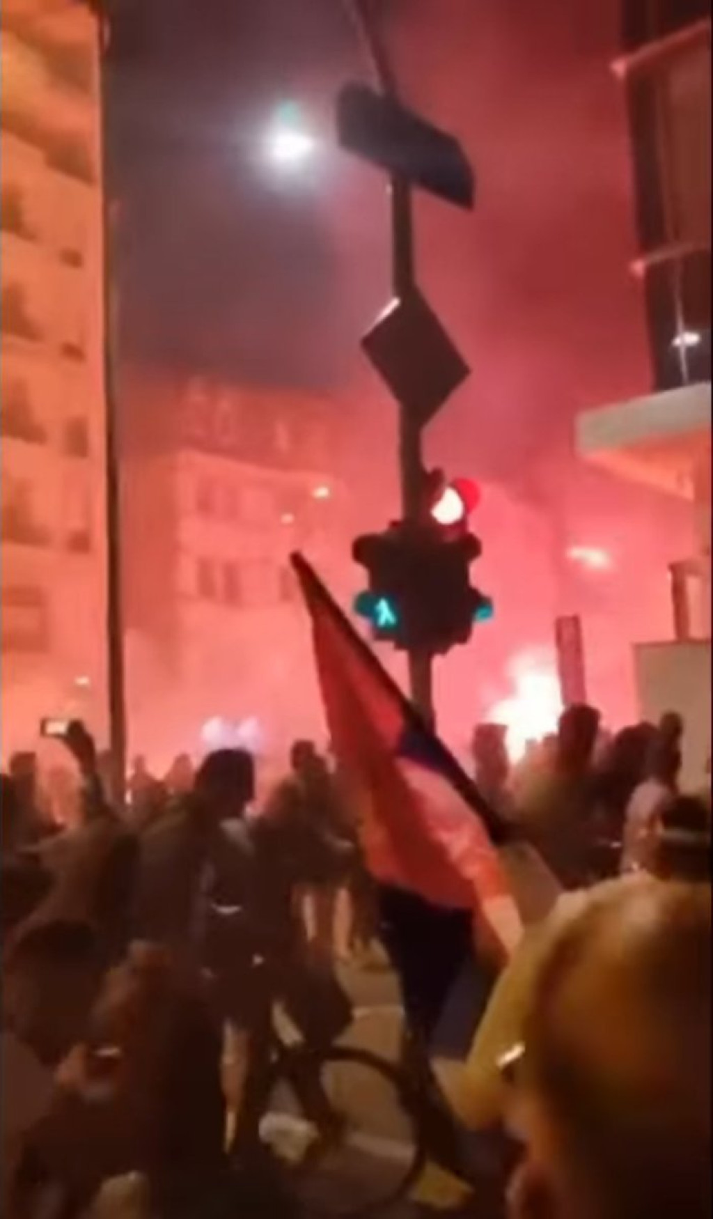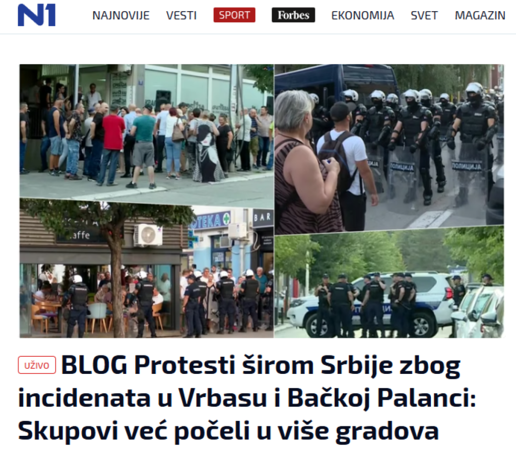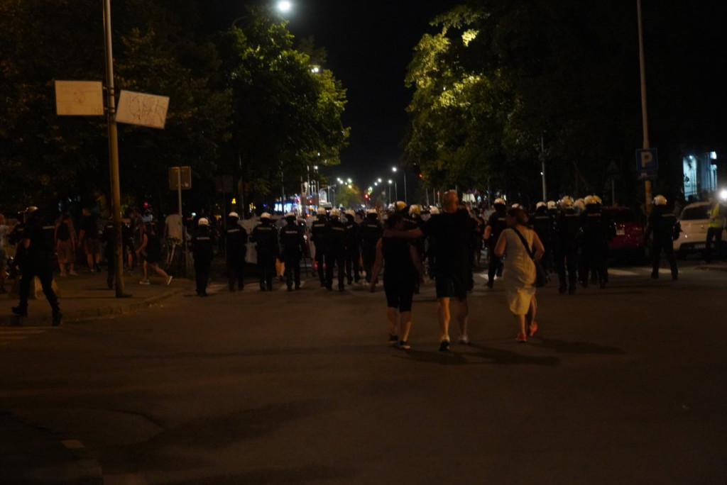 Prema trenutnim procenama, okupilo se oko stotinu pristalica ove grupe, dok se neposredno ispred samih prostorija nalaze članovi i simpatizeri SNS-a, koji mirno stoje u odbrani svojih prostorija i simbola stranke.