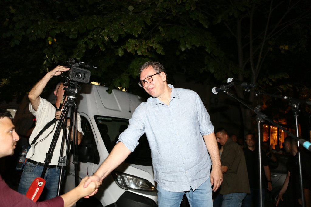 - Želeo sam samo da budem sa vama ispred naše kuće, da pokažemo da je važno čuvamo i zaštitimo svoje, da ne diramo ničije kuće, zgrade - rekao je predsednik Srbije.