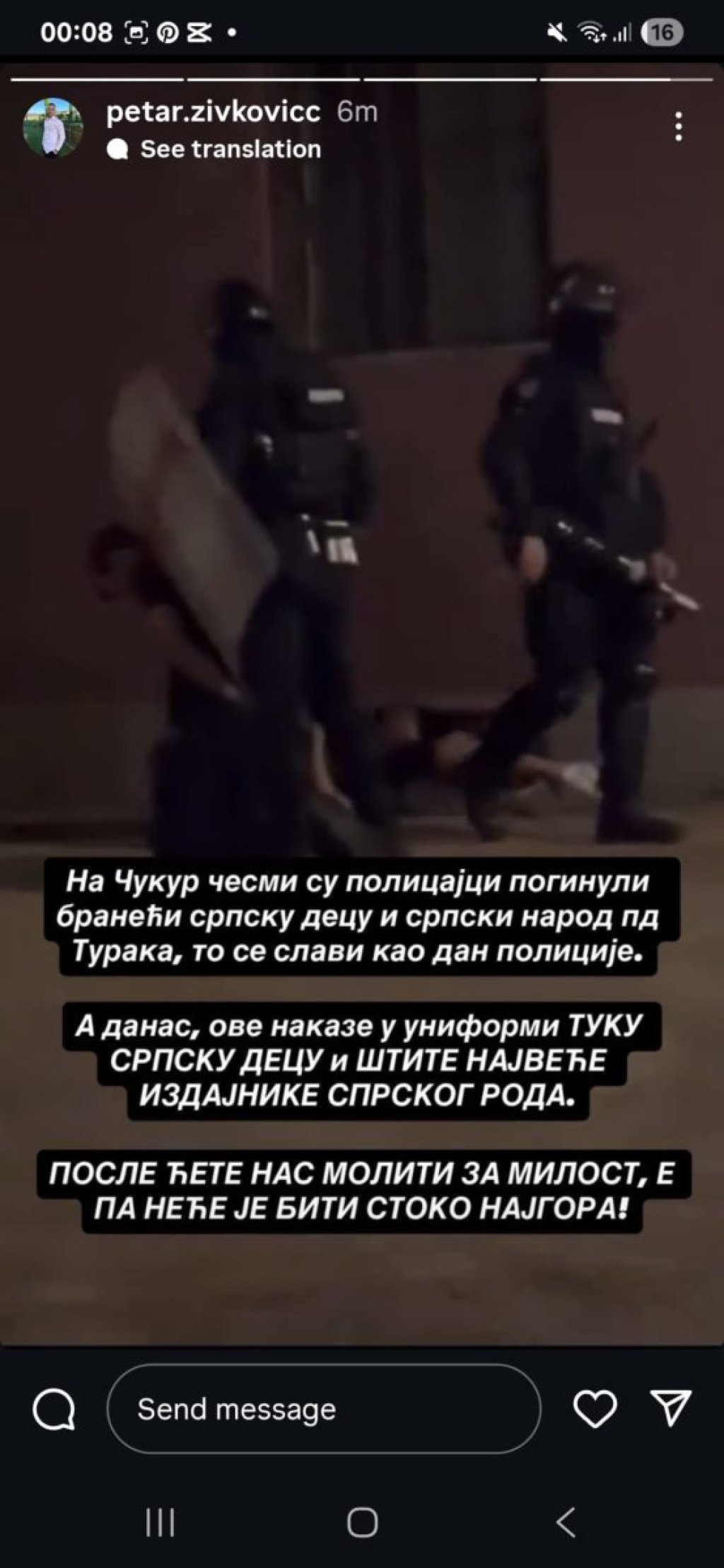 Petar Živković, predvodnik blokadera Pravnog fakulteta i ujedno rednovni gost Šolakovih medija, preti policiji da će ga moliti za milost...