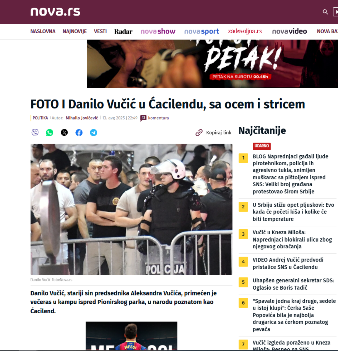 Naime, antisrpska Nova S objavila je tekst kako su Danilo i Andrej Vučić juče u trenutku najžešćih nemira u Beogradu, koje su izazvali blokaderi teroristi, bili u centru glavnog grada, tačnije kod Pionirskog parka gde se nalazi takozvani Ćacilend.