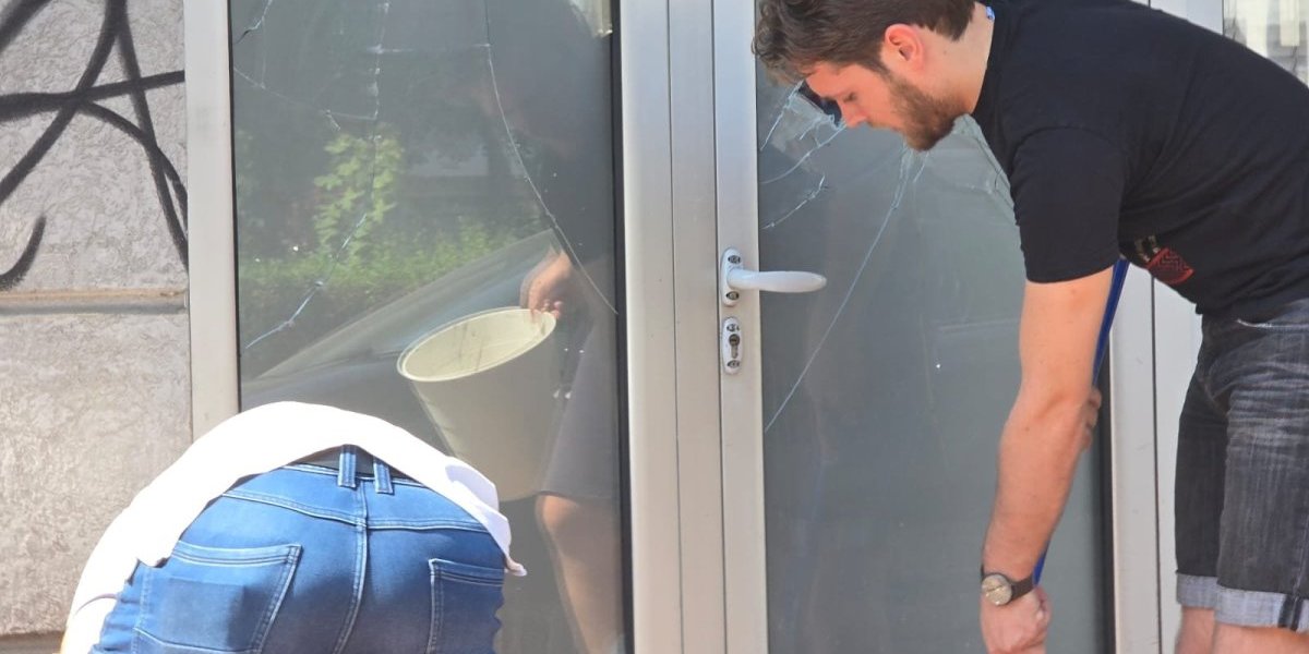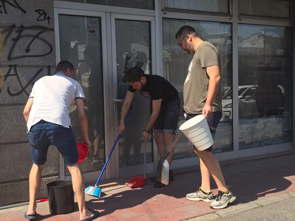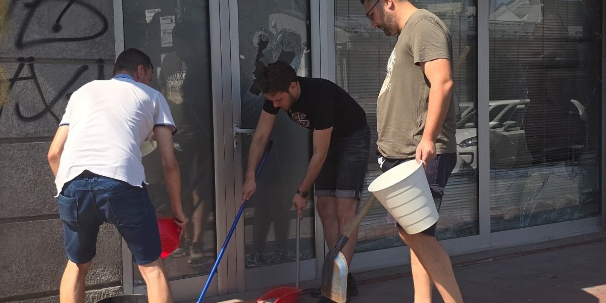 Pristalice SNS, koji su sve suprotno od divljaka koji mesecima unazad maltretiraju narod, jutros su se okupili da počiste staklo i nered za huliganima.