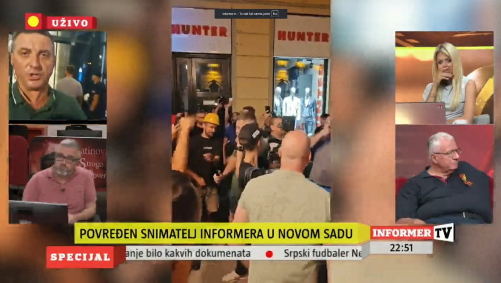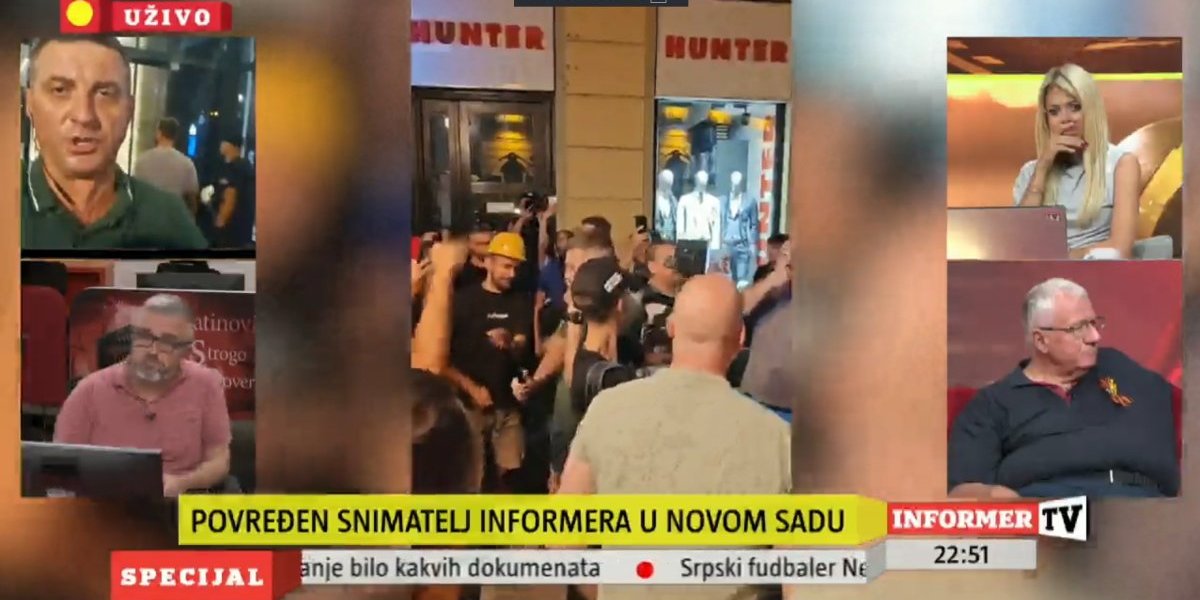 Udruženje novinara Srbije (UNS) osuđuje fizički napad na novinarsku ekipu televizije Informer, novinara Vladimira Savića i snimatelja Petra Mladenovića koji se sinoć dogodio dok su izveštavali sa protesta ispred gradske kuće u Novom Sadu i traži da se napadači kazne.
