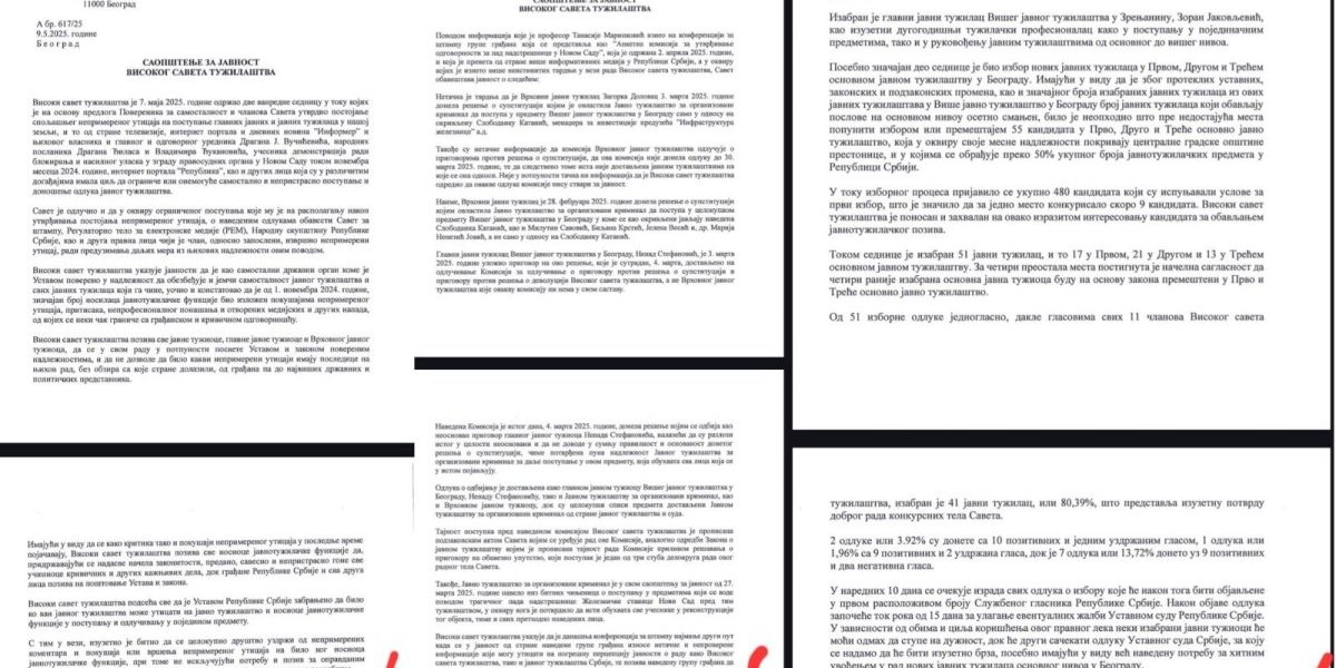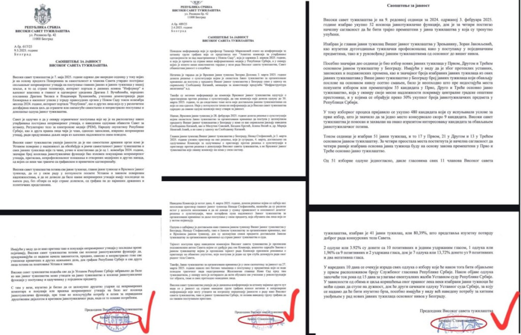 Međutim, ono što posebno upada u oči, nije samo sadržaj saopštenja, već činjenica da se na dokumentu ne nalazi potpis predsednika Saveta, Branka Stamenkovića, koji se inače uvek potpisuje, već se kao izvor saopštenja navodi Odeljenje za odnose s medijima.