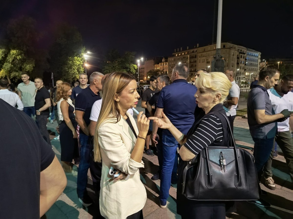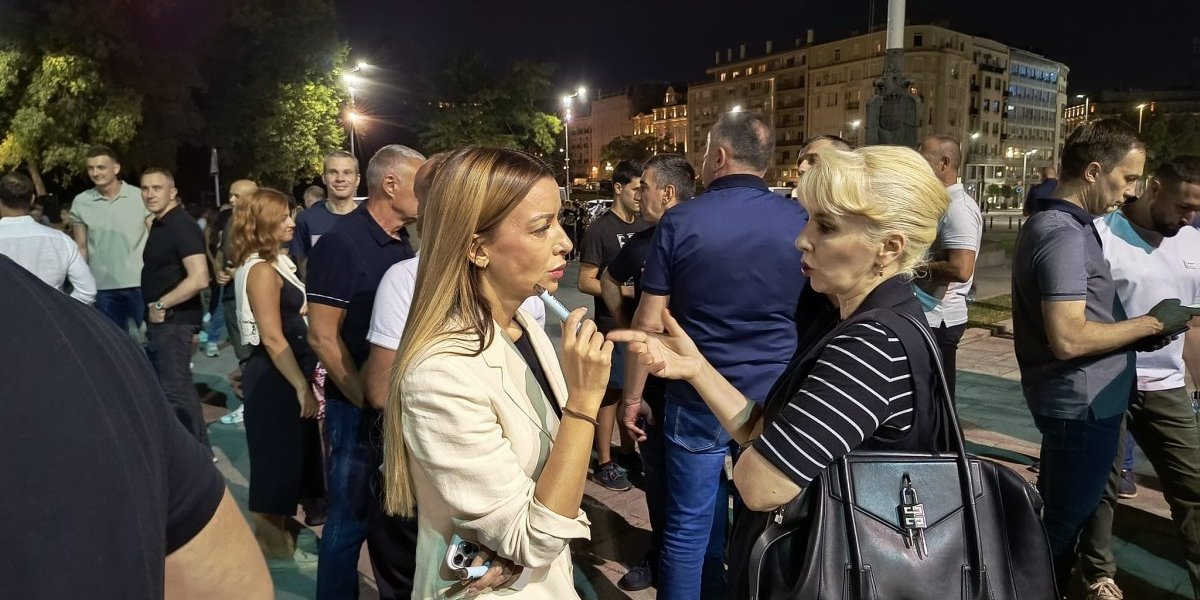 Ministri Vlade Srbije razgovaraju sa okupljenim građanima koji su se u velikom broju okupili ispred Narodne skupštine.