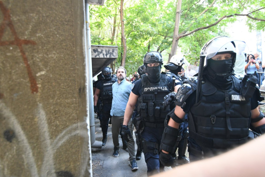 Efikasnim radom policija je identifikovala i po nalogu Višeg javnog tužilaštva u Beogradu uhapsila tri osobe koje su prošle noći u Cvijićevoj ulici vršile nasilje i razbijale prostorije SNS.
