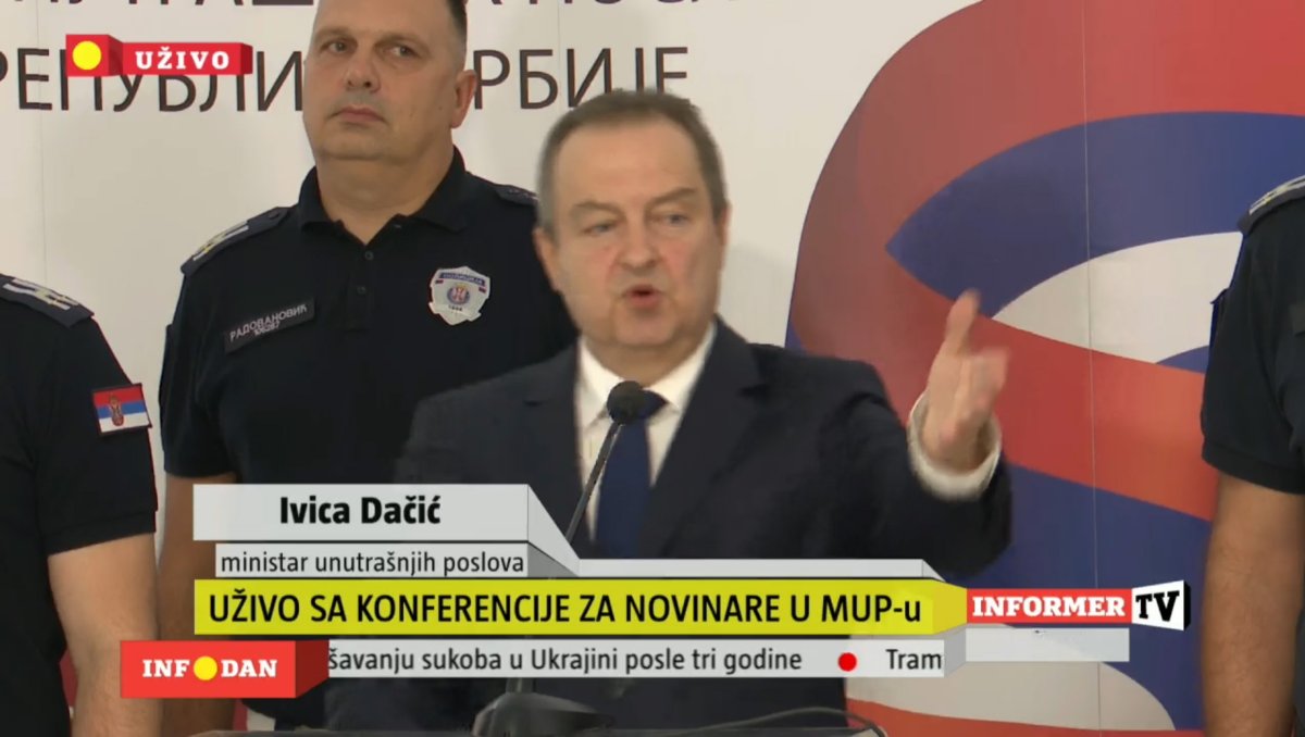 - Svako je mogao da se obrati nama, a isto tako da mi pitamo: Ko je dao zeleno svetlo za povređivanje policajaca? Ko je odgovoran za to? Vladaće rat svih protiv svih! Šta treba, pa ovde bi bez policije izbio građanski rat. Vodite račune o porodicama policajaca. Među njima možda ima i nekih koji su na ulici, protestuju. Policajci rade svoj posao. Ja sam bio ministar i ranije, i postupanje policije je uvek bilo isto. Mislite li da se policija raduje da dođe na posao i da nekoga batina. Pa ne budite smešni, svako od njih želi da dođe kući kod svoje porodice, da mu prođe što mirnije - kazao je ministar Dačić.