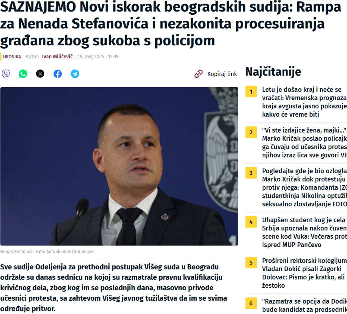 Ovim jednoglasnim stavom, četvoro beogradskih sudija za prethodni postupak, Ana Milošević, Miloš Labudović i Ksenija Marić još jednom su, ovaj put i sa koleginicom Marijom Janković Debeljak, udarili na glavnog tužioca VJT Nenada Stefanovića.