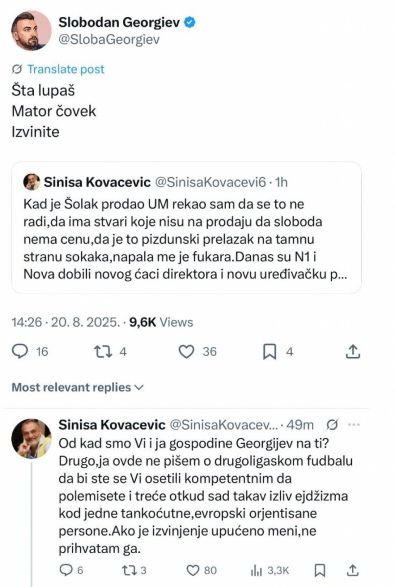 Njih dvojica besramno su, javno na platformi "X" razmenili teške uvrede i to zbog njihovih drugara, tajkunskih medija.