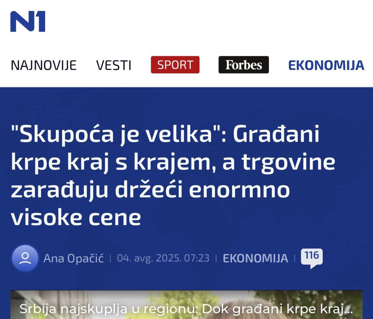 Tako je TV N1 u avgustu, samo dve i po nedelje pre nego što je predsednik Vučić objavio ove mere, objavila da trgovinski lanci zarađuju na narodu u Srbiji.