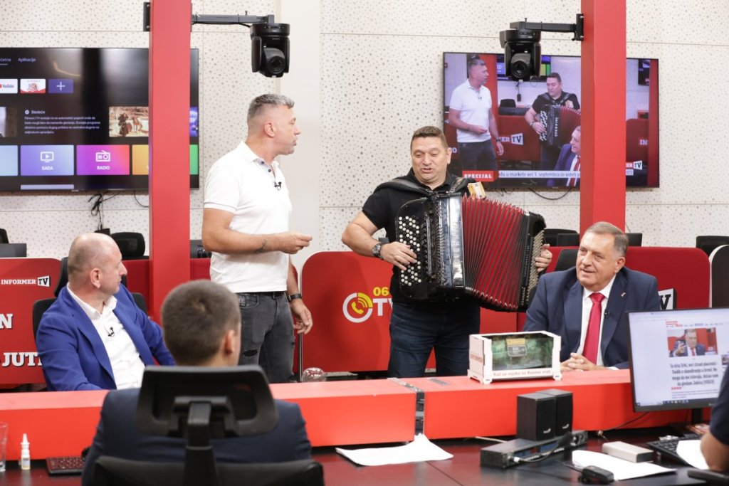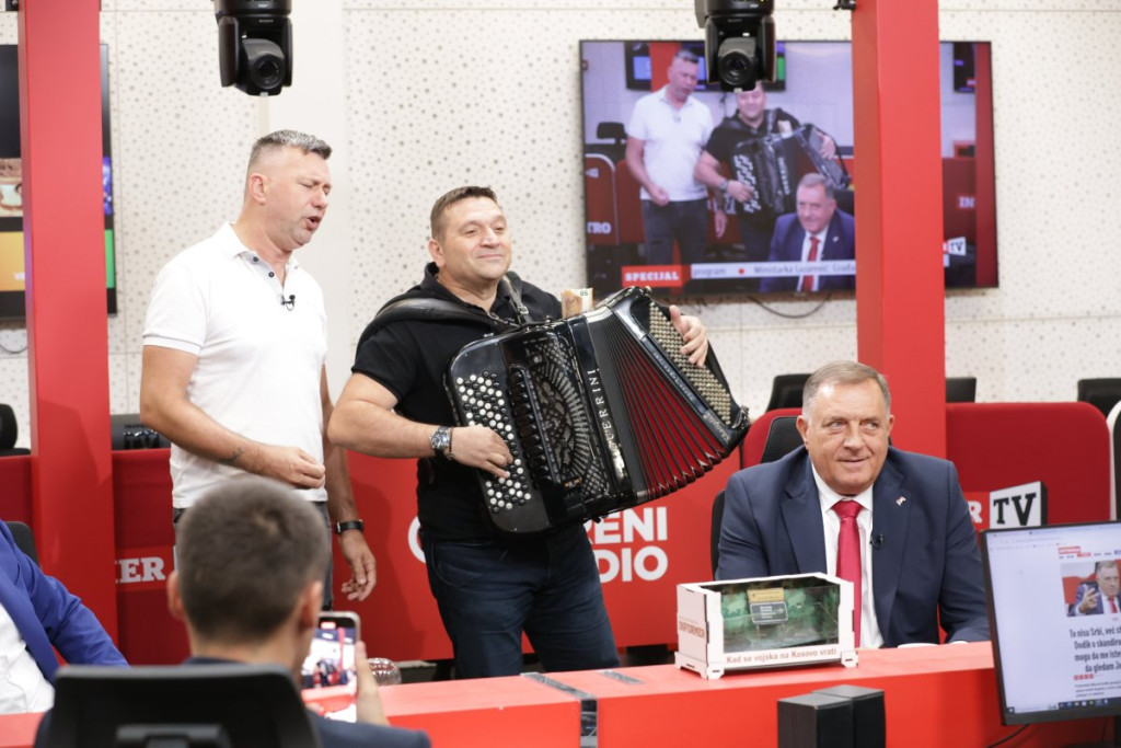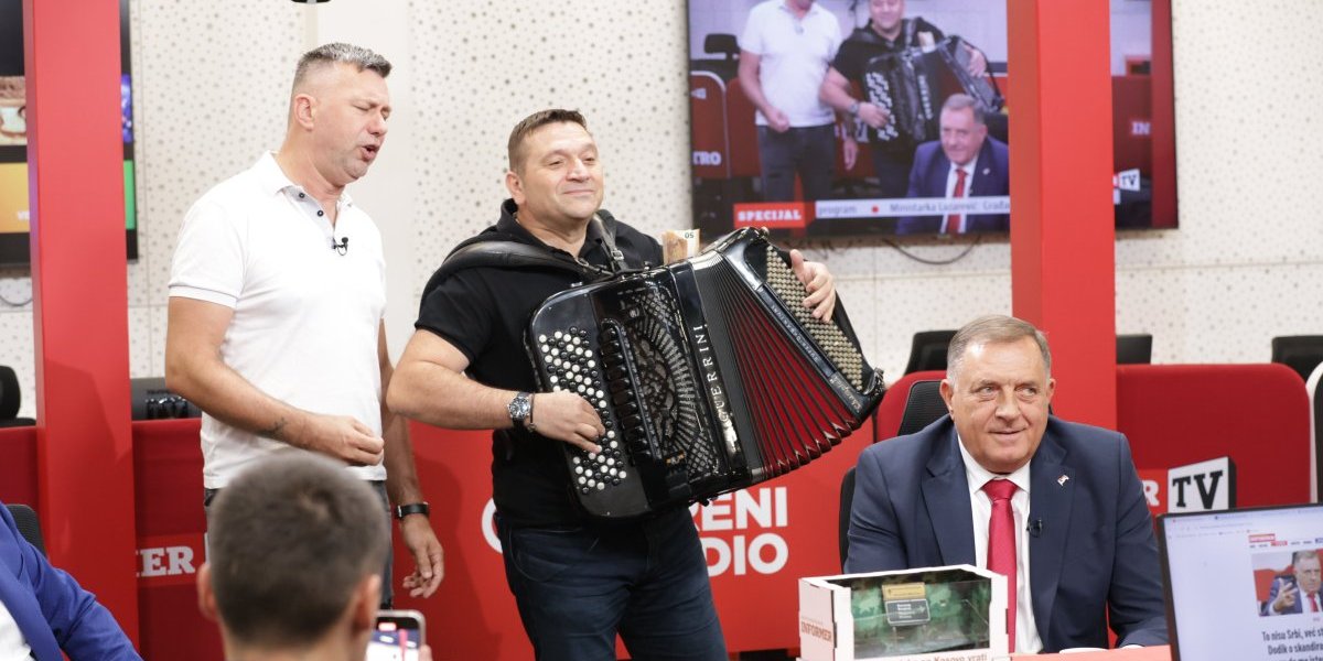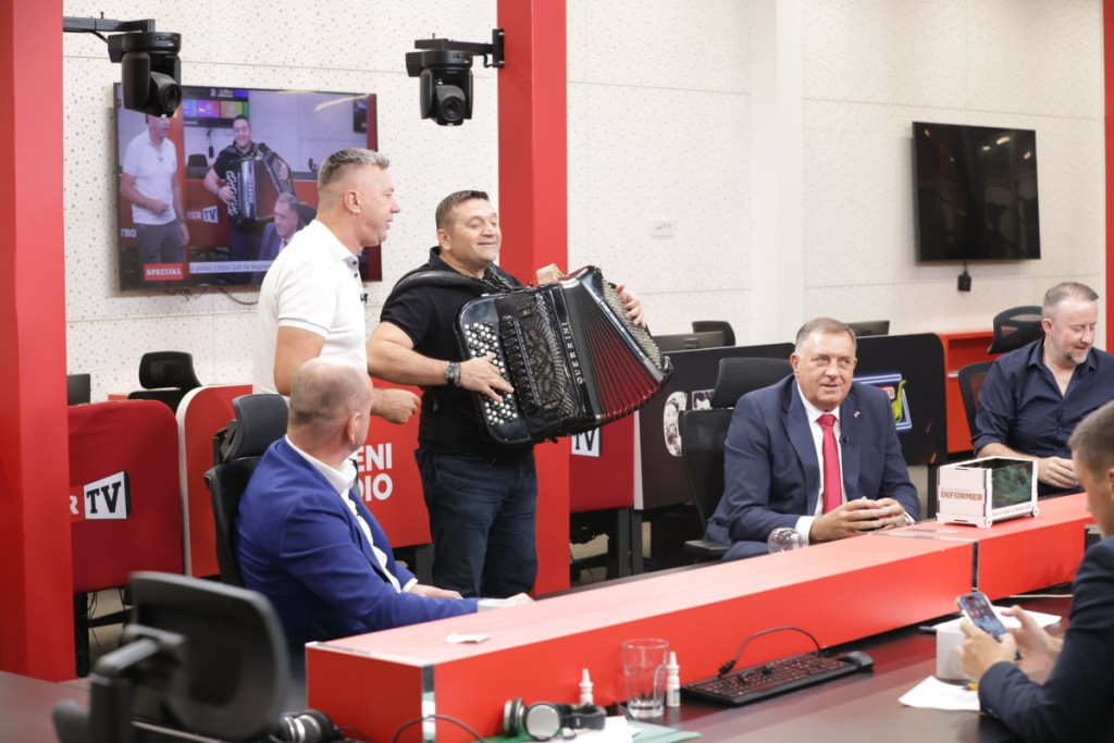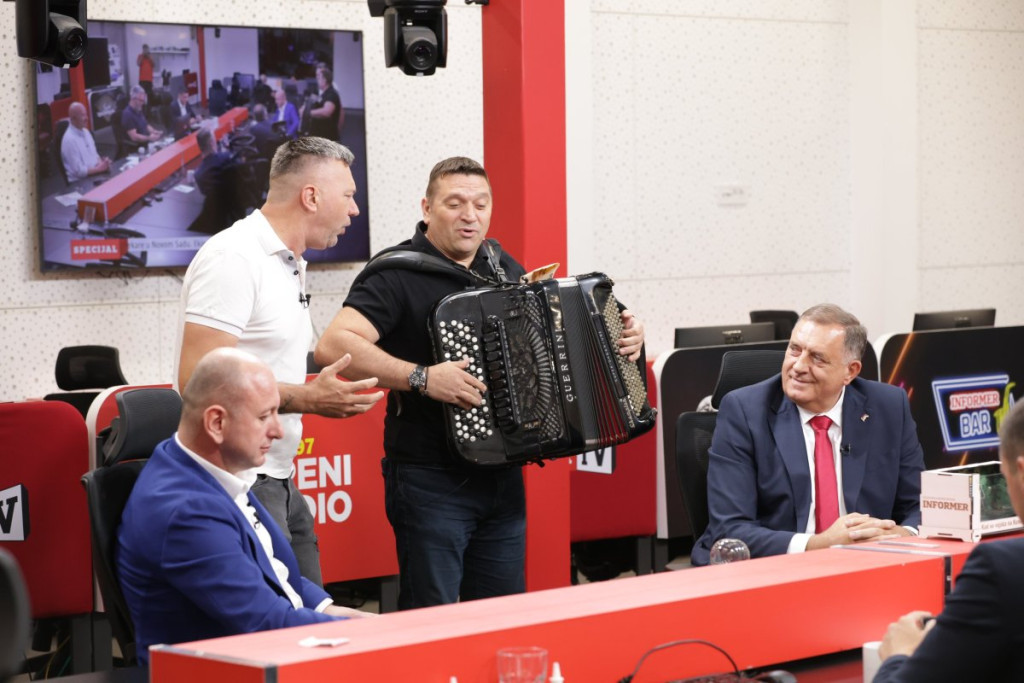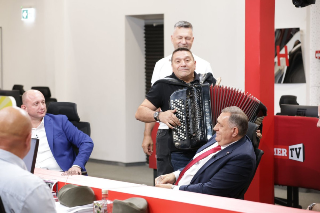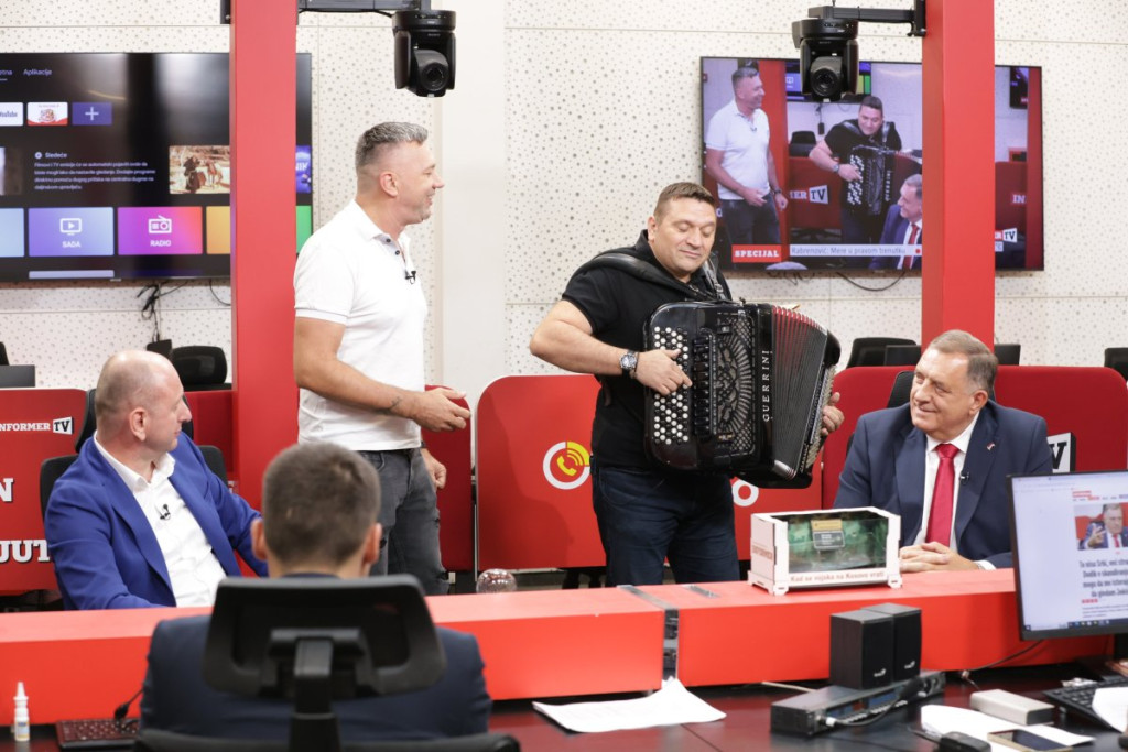 Onako kako smo i navikli, Dodik se odmah latio džepa i okitio harmoniku. Nije mu mnogo trebalo ni da zapeva.