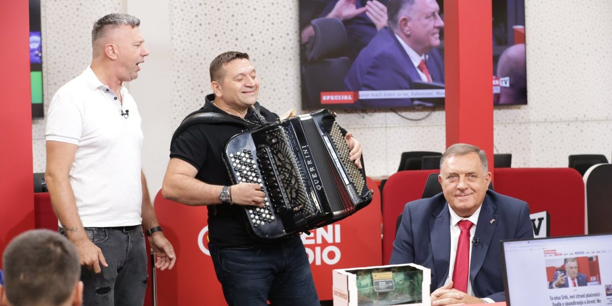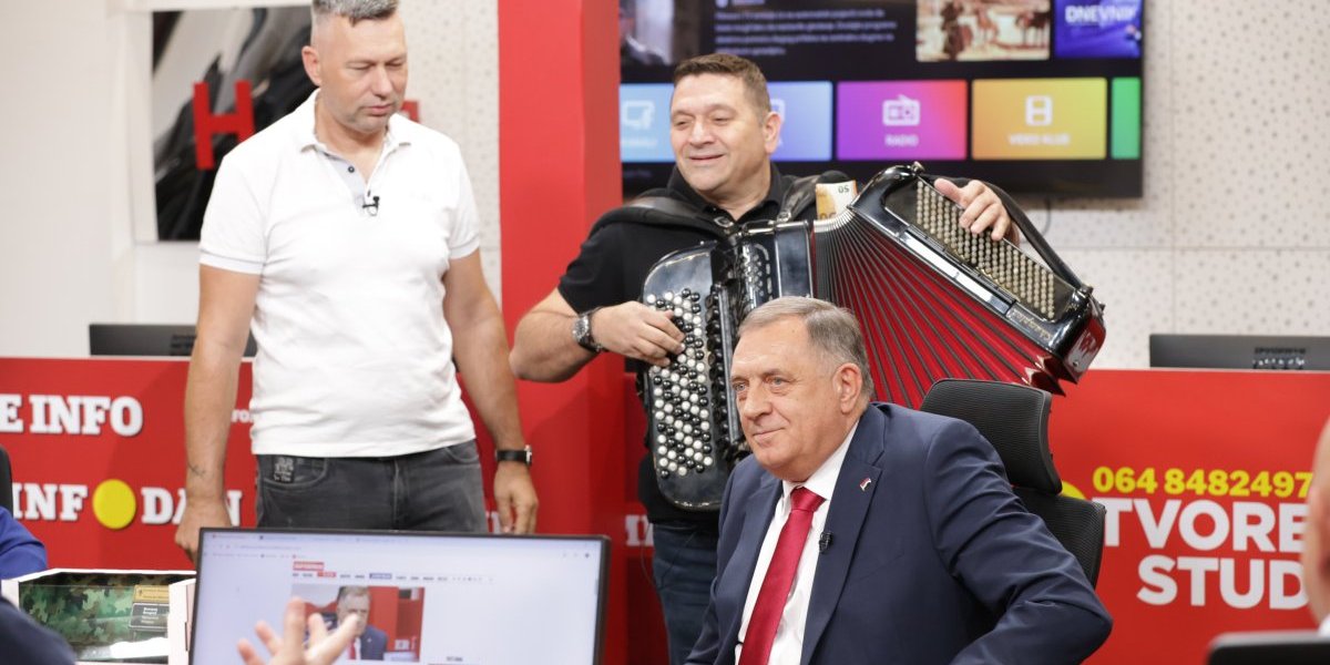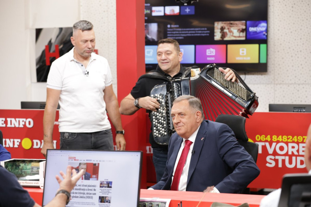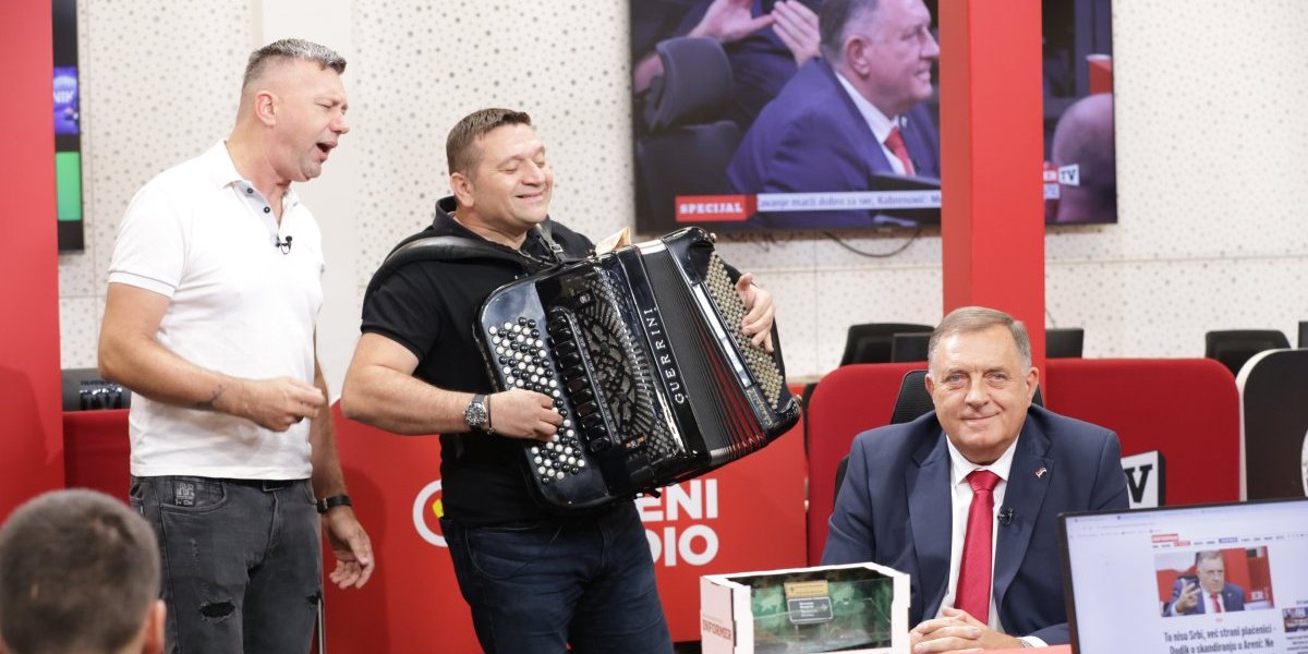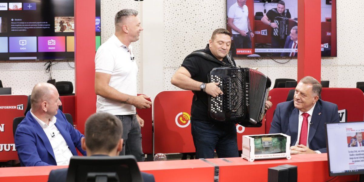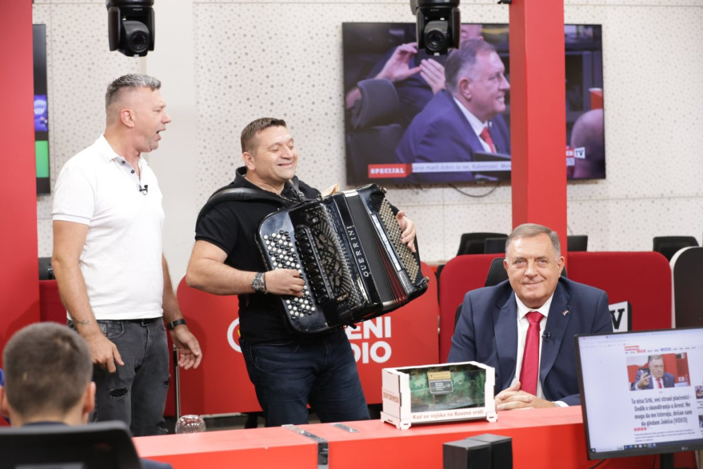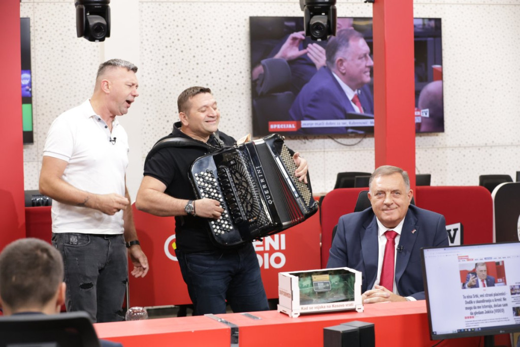 Onako kako smo i navikli, Dodik se odmah latio džepa i okitio harmoniku. Nije mu mnogo trebalo ni da zapeva.