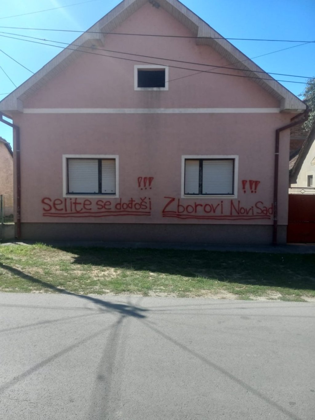 U pitanju je kuća u Futogu u kojoj živi Balaćeva baka, a na njenim zidovima se sada nalazi preteća poruka: "Selite se, dođoši".