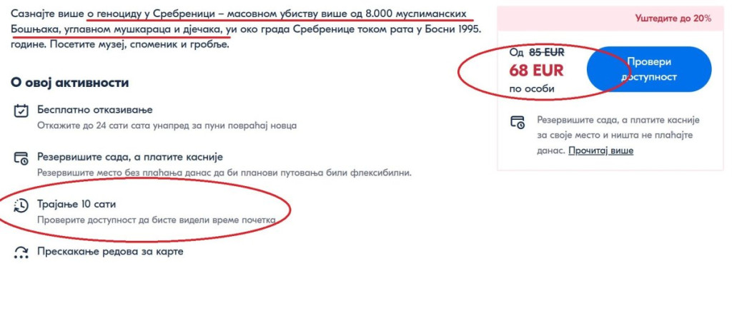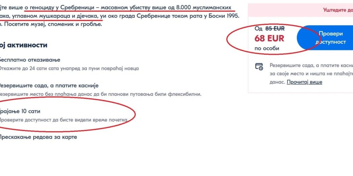 Kako bi privukli strance, koji ne znaju ništa o ovoj jezivoj laži i fabrikovanoj priči koja, uprkos višegodišnjoj priljavoj kampanji nije dobila podršku ni u Generalnoj skupštini UN, sarajevske agencije, verovatno uz pomoć vlasti u BiH, nude čak i popust!?!