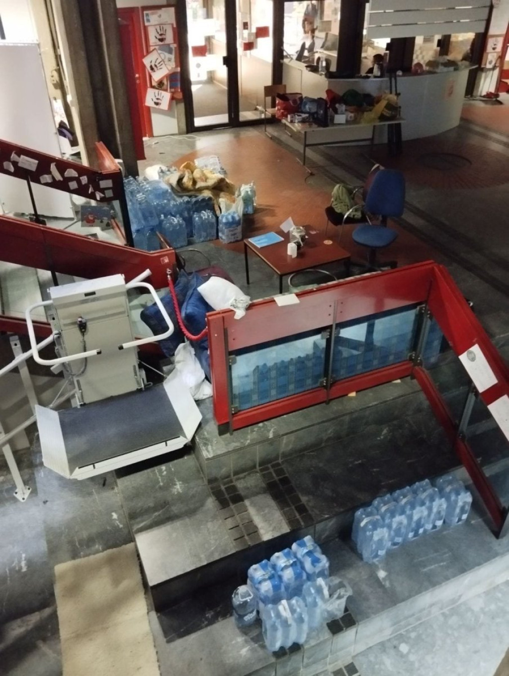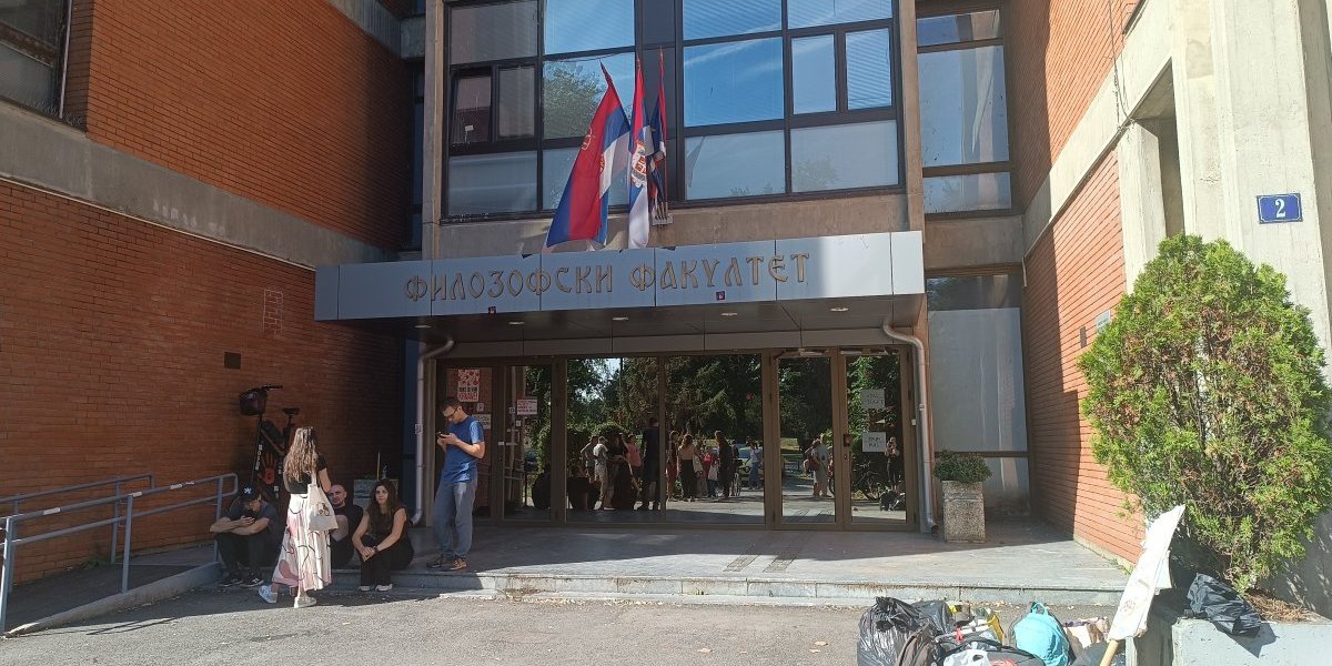 Ispred zgrade Filozofskog su trenutno policija i Žandarmerija, kao i grupa građana koja se okupila na poziv studenta u blokadi. Došlo je do guranja okupljenih sa pripadnicima policije i Žandarmerije. Dekan Alanović je i dalje u zgradi fakulteta sa nekoliko profesora.