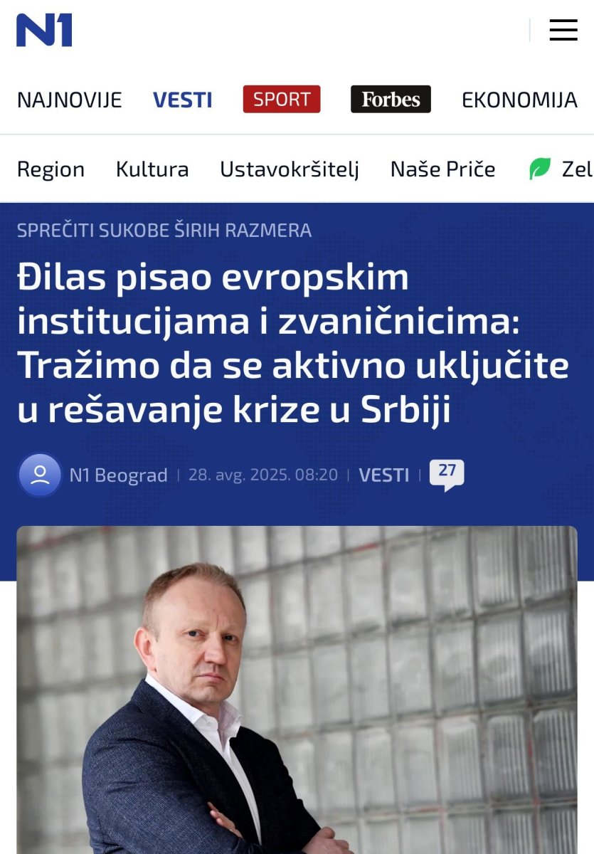 Tajkun je ovaj svoj plan objavio preko tajkunskih medija, tačnije televizije N1. Tako je na portalu ove televizije objavljen tekst pod naslovom: "Đilas pisao evropskim institucijama i zvaničnicima: Tražimo da se aktivno uključite u rešavanje krize u Srbiji".