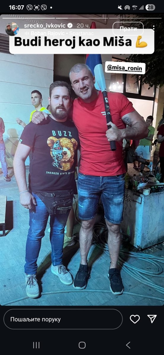 Kako se može videti i na njegovom Instagram nalogu, on se uortačio sa još jednim osvedočenim nasilnikom, Mišom Bačulovim, poznatom i kao Miša Govnar.