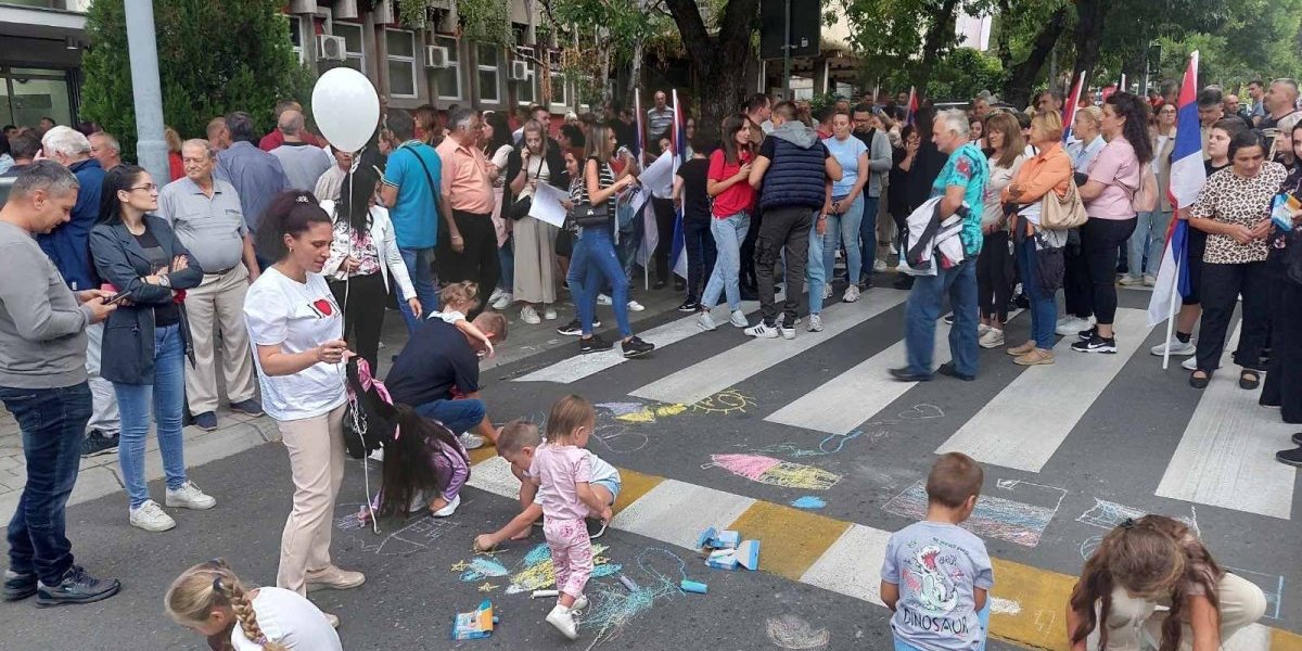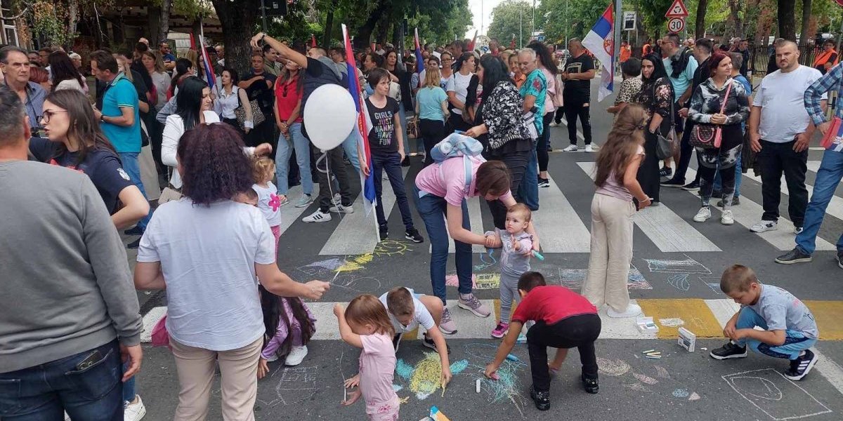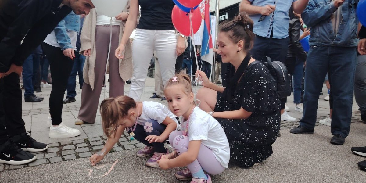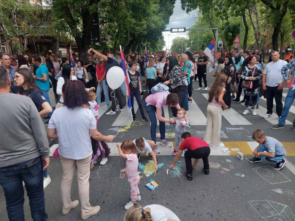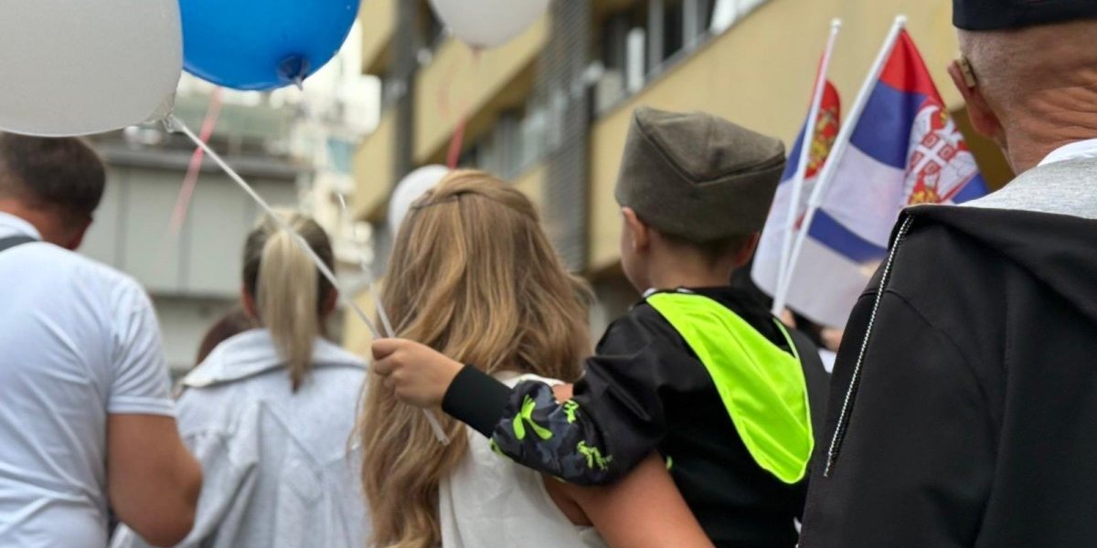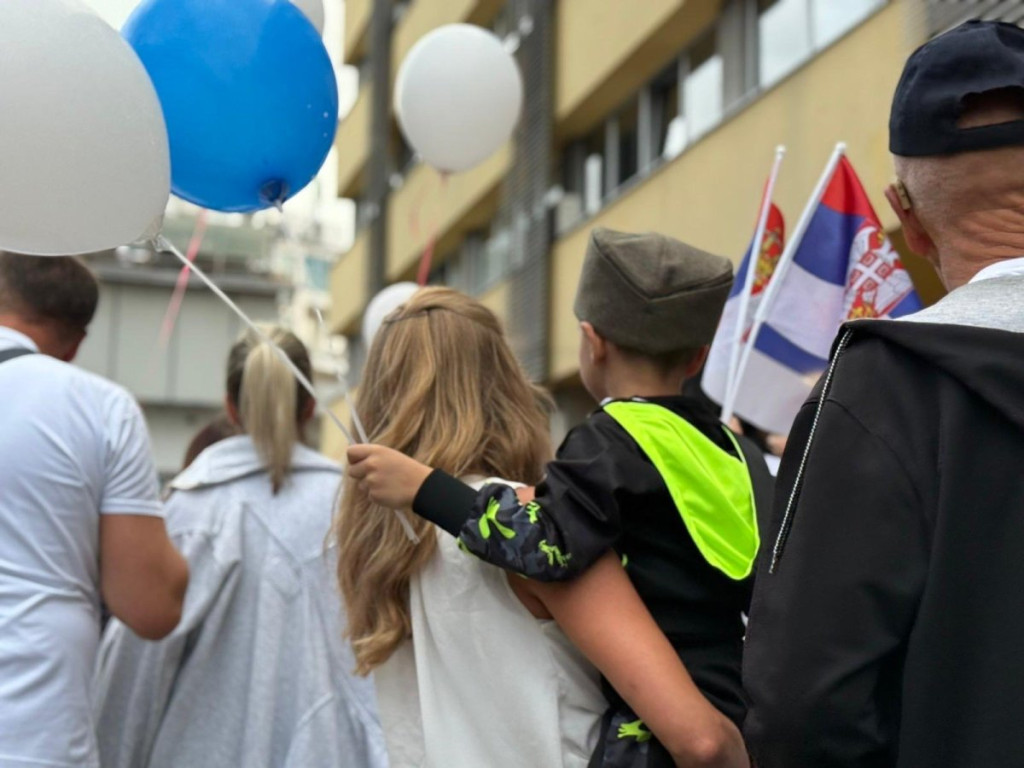 Na ulicama sa građanima koji su ustali protiv blokada su i naši najmlađi sugrađani, ogrnuti trobojkama, sa šajkačom na glavi, igraju se sa drugim mališanima...