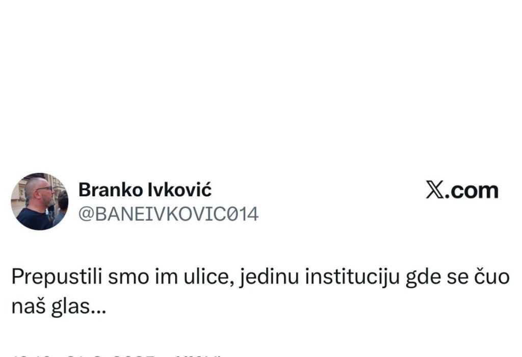 - Prepustili smo im ulice, jedinu instituciju gde se čuo naš glas - napisao je Ivković s očiglednim očajanjem koje "izbija" iz ove rečenice.