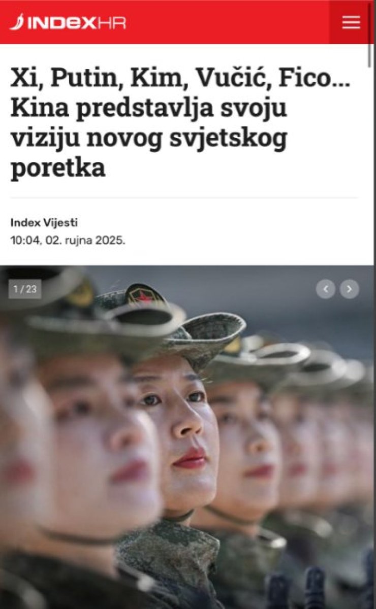 Hrvatski portal 'Index.hr' objavio je tekst pod naslovom: ''Xi, Putin, Kim, Vučić, Fico.. Kina predstavlja svoju viziju novog svetskog poretka'.