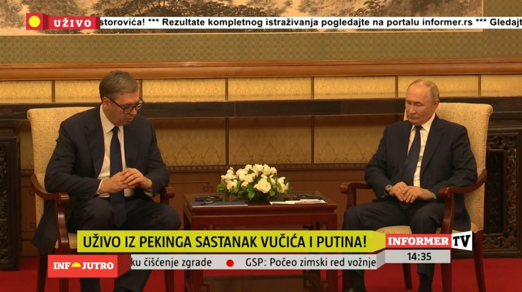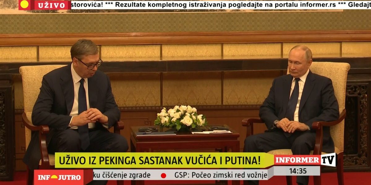 Predsednik Srbije Aleksandar Vučić danas se u Pekingu u Kini sastao s ruskim kolegom Vladimirom Putinom.