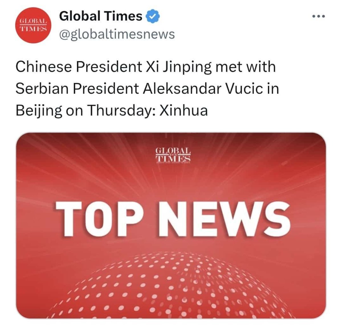 Predsednik Srbije je nakon sastanka naglasio da su Srbija i Kina čelični prijatelji i da trgovinska razmena dve zemlje nikada nije bila veća, a da je Inicijativa za globalno upravljanje, koju je predložilo kinesko rukovodstvo, dobar koncept koji će Srbija uvek podržati.