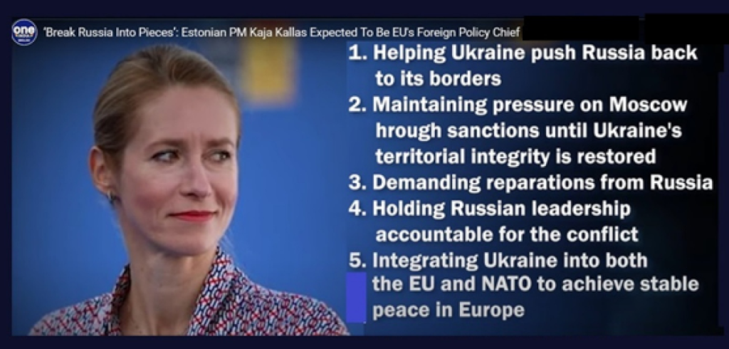 Kada znamo da partija koju vodi Kaja Kalas (Estonski reformisti) ima samo jednog od 705 poslanika Evropskog parlamenta, i kada znamo da je njena partija poražena na izborima za Evropski parlament (treća u Estoniji), postavlja se logično pitanje, kakav kredibilitet i pokriće ima Kaja Kalas da zauzme treću po važnosti funkciju u EU? Kaja Kalas je izabrana da bude Komesarka za spoljnu politiku, zbog svojih ekstremno antiruskih stavova, a ne zbog svog kredibiliteta.