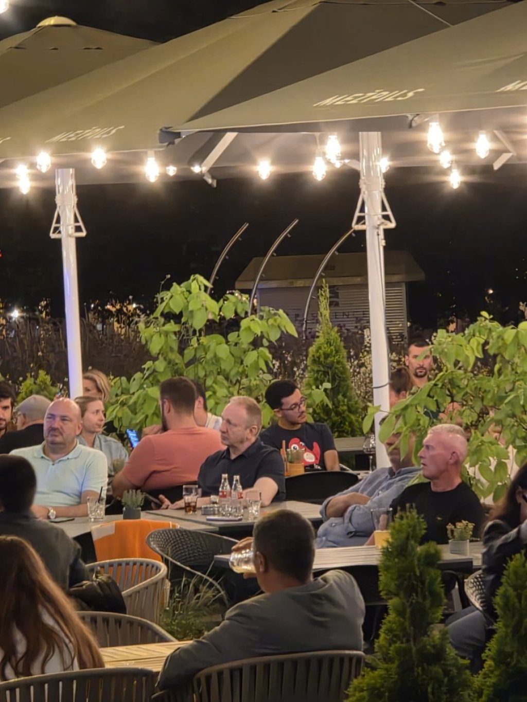 Na osnovu fotografije se vidi da ova ekipa pijucka samo gazirani sok, a da li su u kafiću samo gledali utakmicu ili sklapali nove planove za još propalih obojenih revolucija, teško je reći.