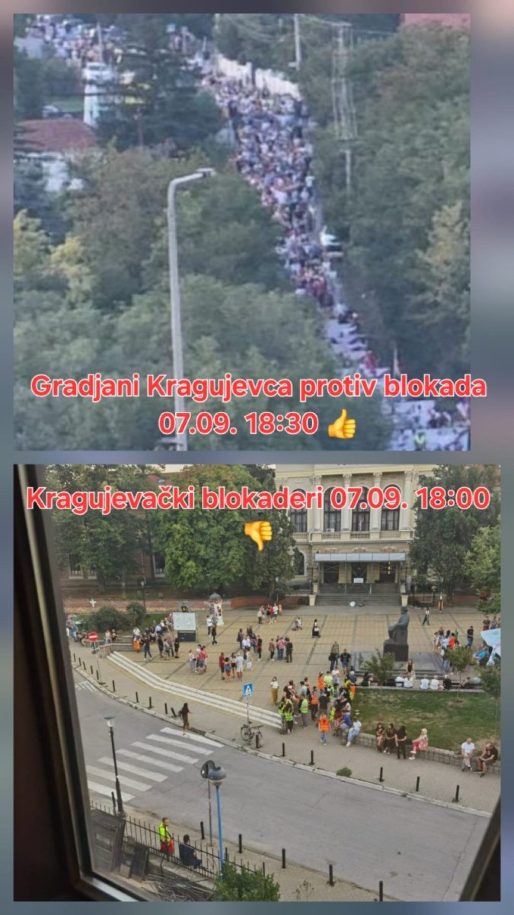 Jasno je šta misli većina - fotografija iz Kragujevca sve pokazala, na gornjoj slici, vidi se reka ljudi, to su građani koji su protiv blokada, na donjoj fotografiji šaka jada zgubidana.