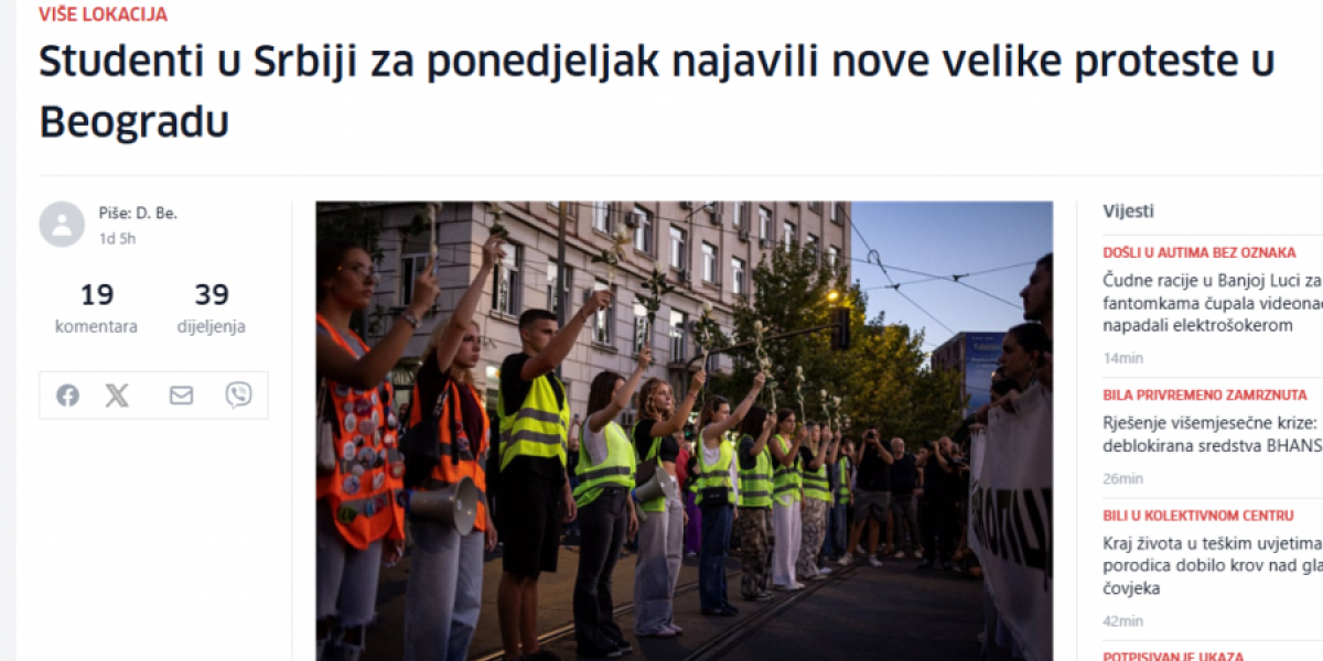 Međutim, to se nije desilo. I sada, kada je najavljen najveći do sada skup naredne nedelje, 14. septembra od 18.30 u 140 mesta, Indeks, Jutarnji, Kliks, Avaz, Kossev, Gazeta - ćute.