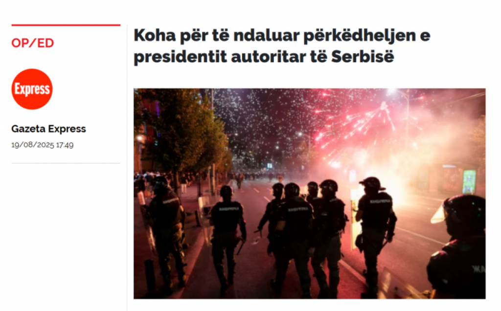 O čemu se radi? Na primer, albanska Gazeta Ekspres pisala je o "nasilju policije prema mirnim demonstrantima u Novom Sadu". Da se podsetimo kako je to izgledalo:
